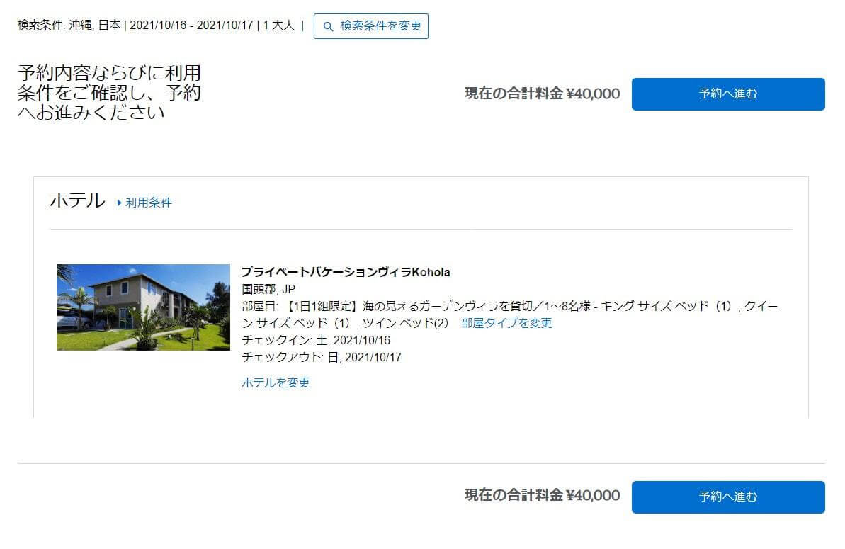 40,001円の宿泊施設の場合キャンペーンコードは適用でき支払う金額は20,001円になりました。
