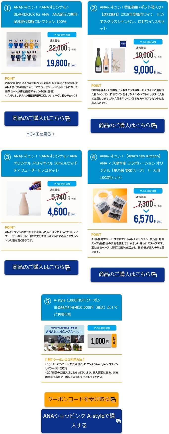 ANAオリジナル商品特別価格&ショッピング全商品割引クーポン - ANA Payでダブルマイル