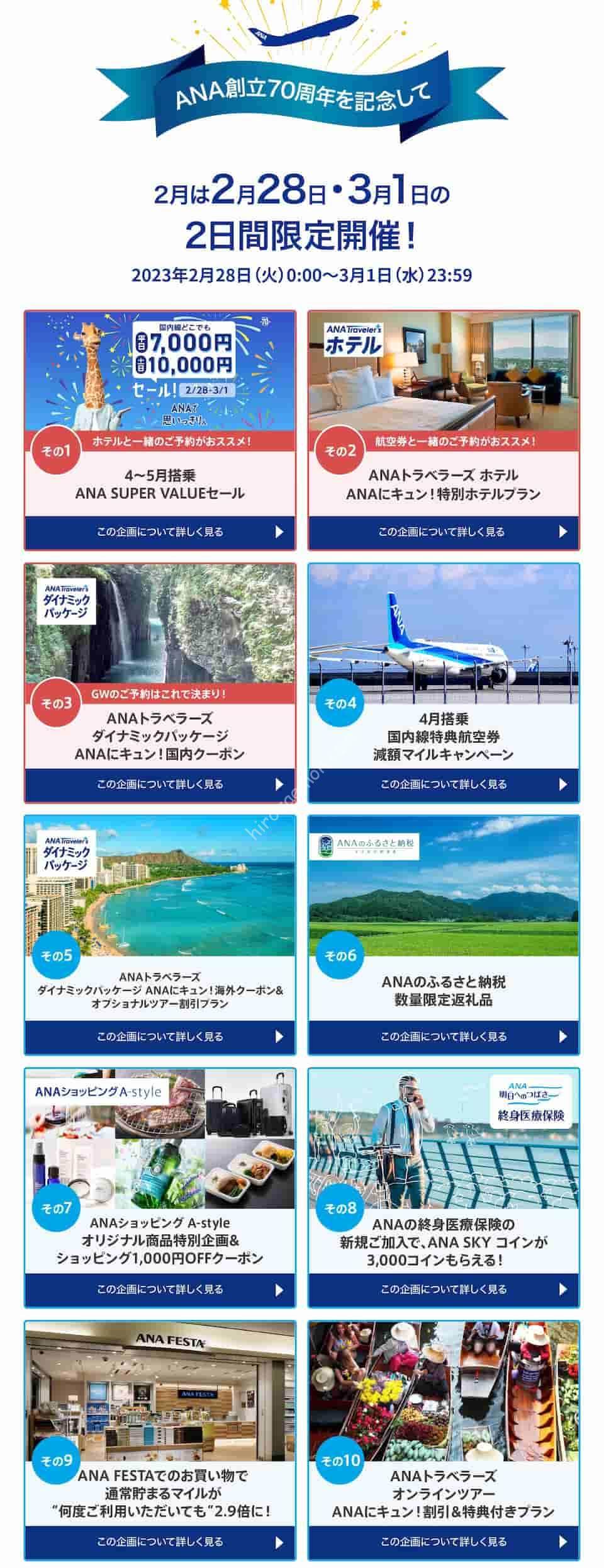 2023年 2月28日(火)0:00~ 3月1日(水)23:59 ※日本時間 | 2023年 4月4日(火)~5月31日(水) ※4月29日〜5月7日搭乗を除く | 国内線全路線 ※ANA4301〜4381便を除く |
