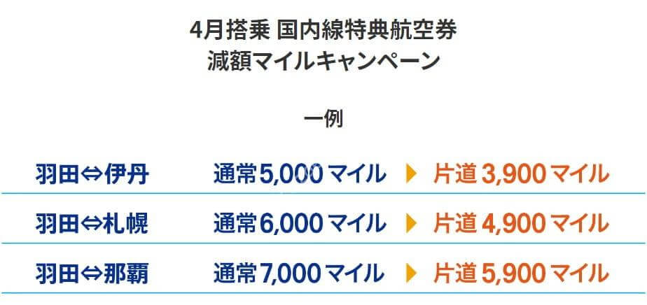 - 4月搭乗分 国内線特典航空券 減額マイルキャンペーン