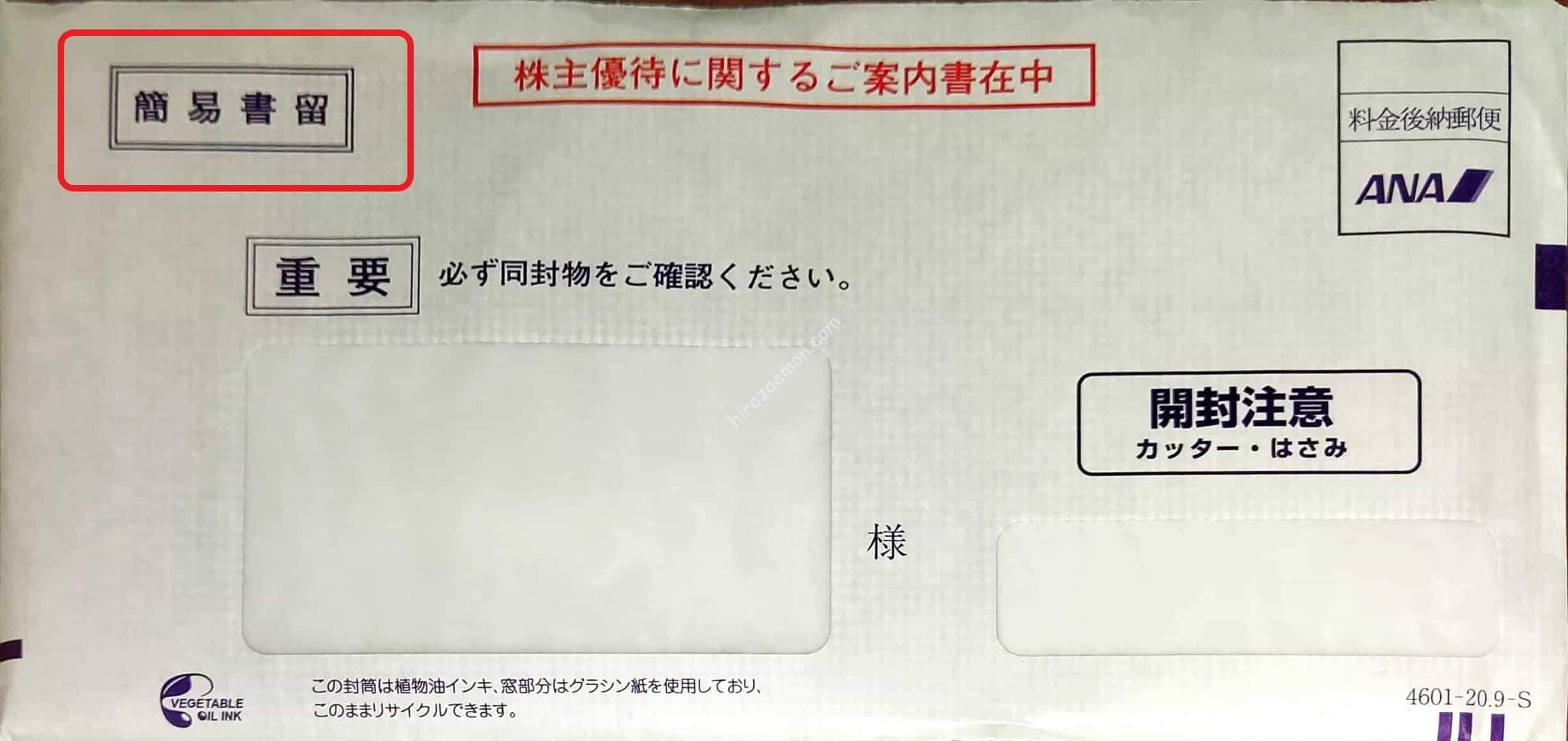 今期は簡易書留から普通郵便に変更されています。