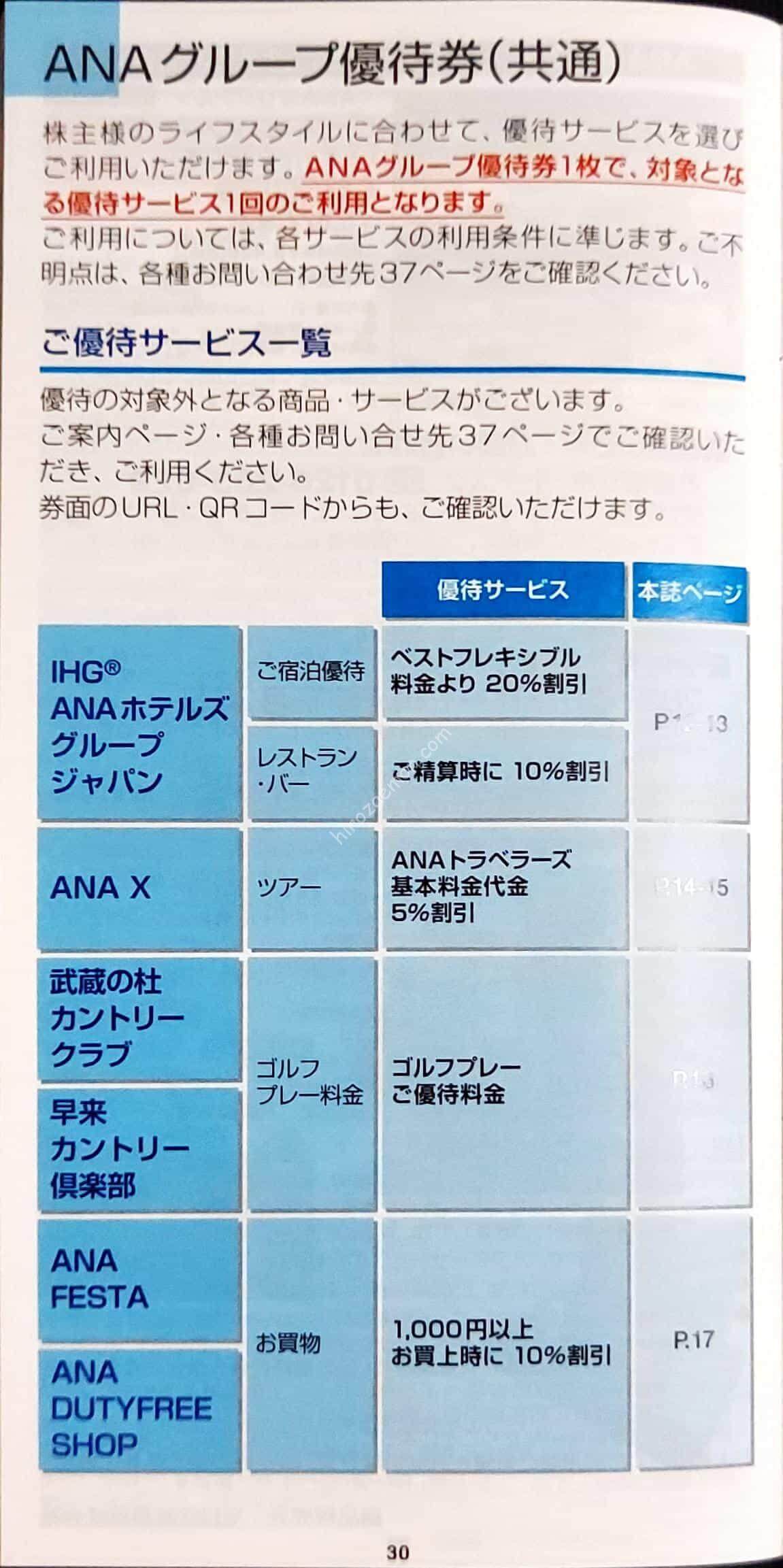 ANAグループ優待券として18枚用意されています。