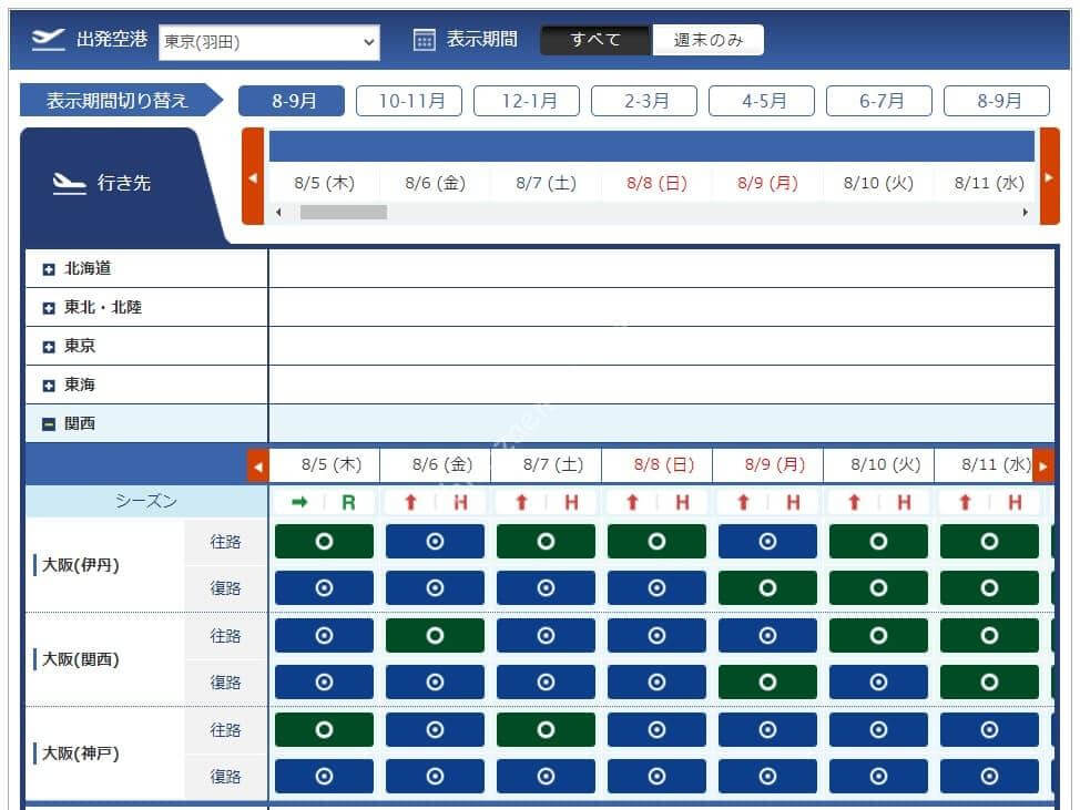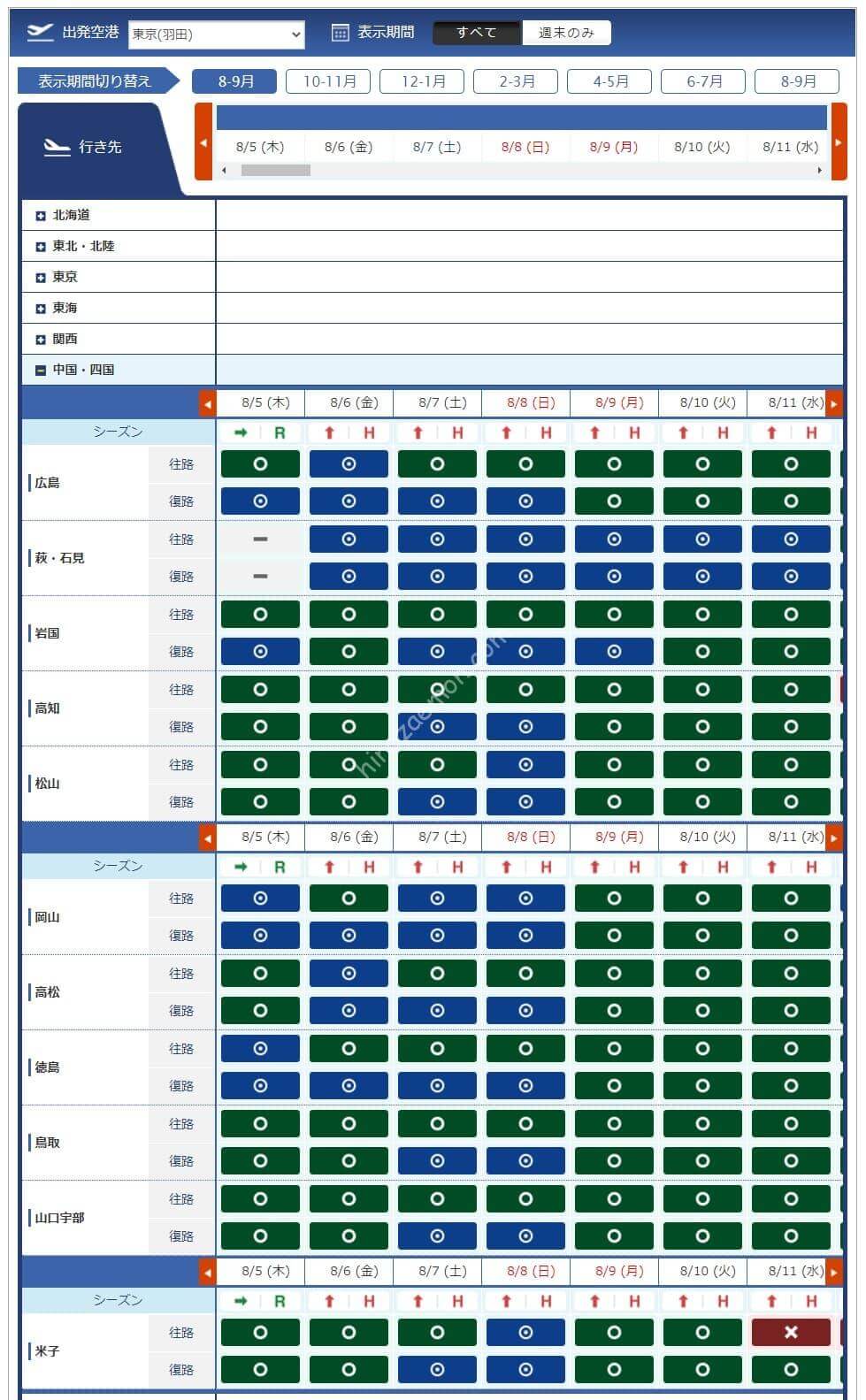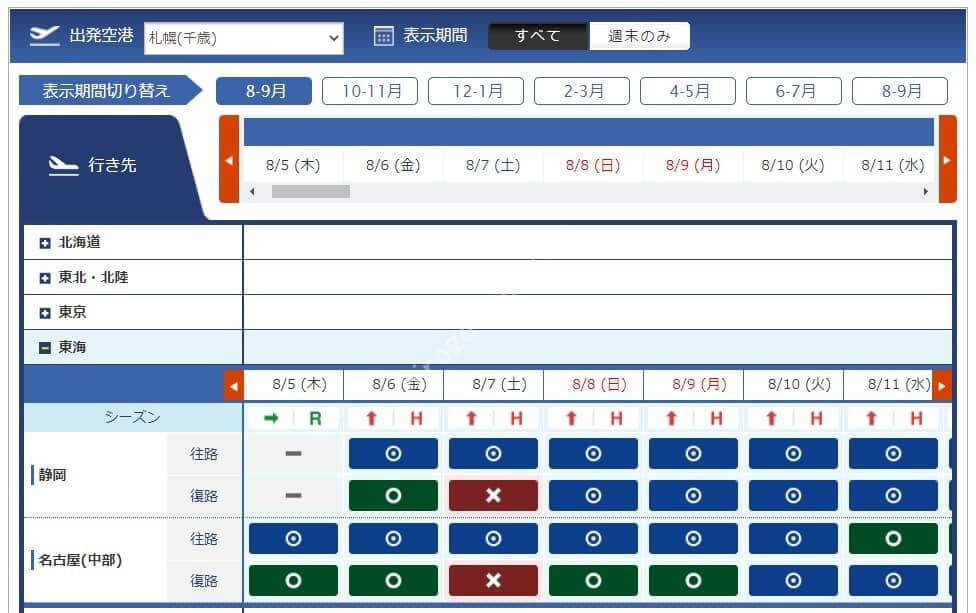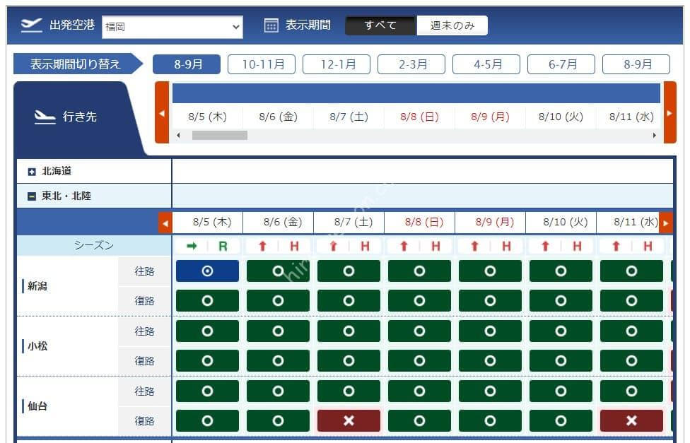 8月6日からはハイシーズンに入るため、4,500マイルから8,500マイルと先週までのトクたびマイルより必要マイルが増えています。