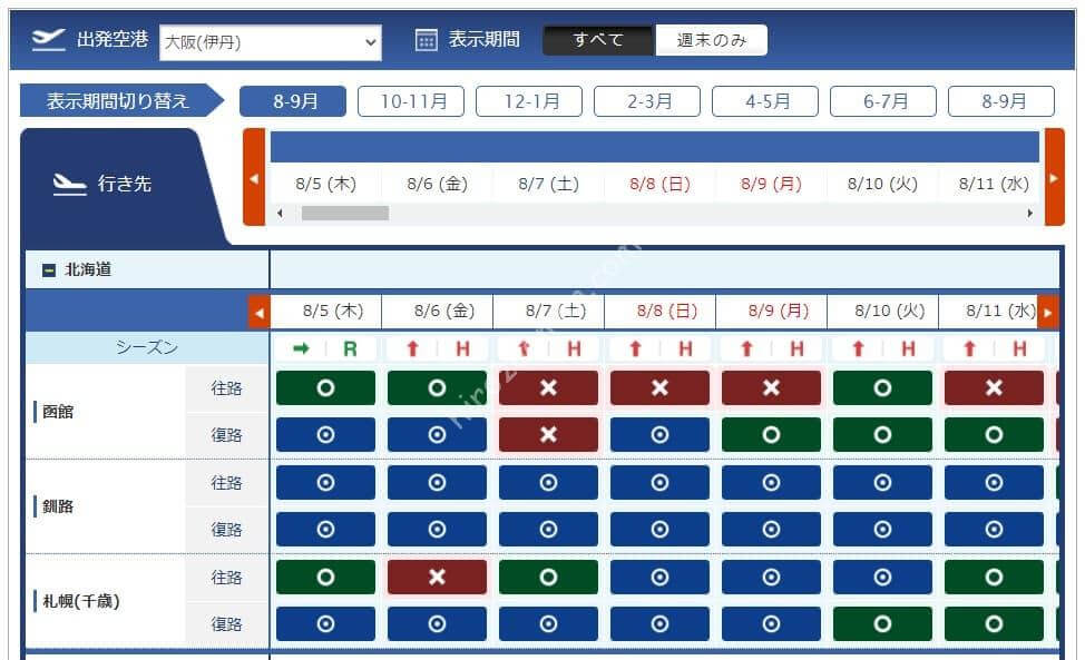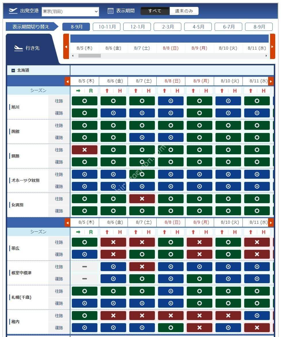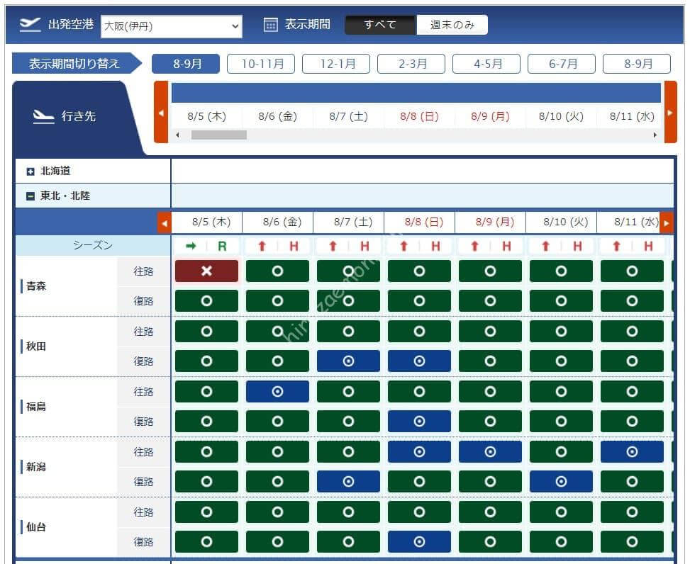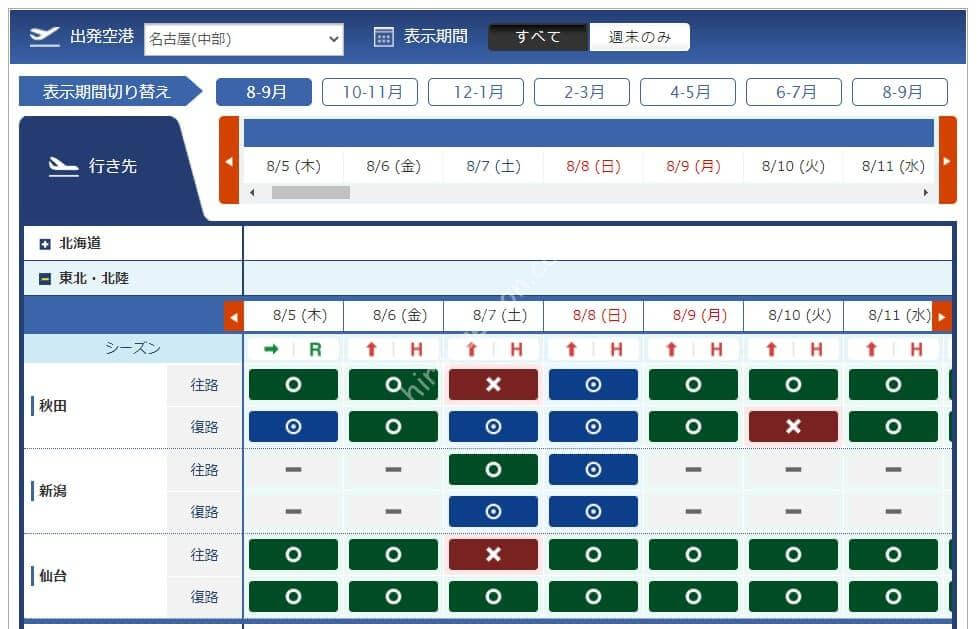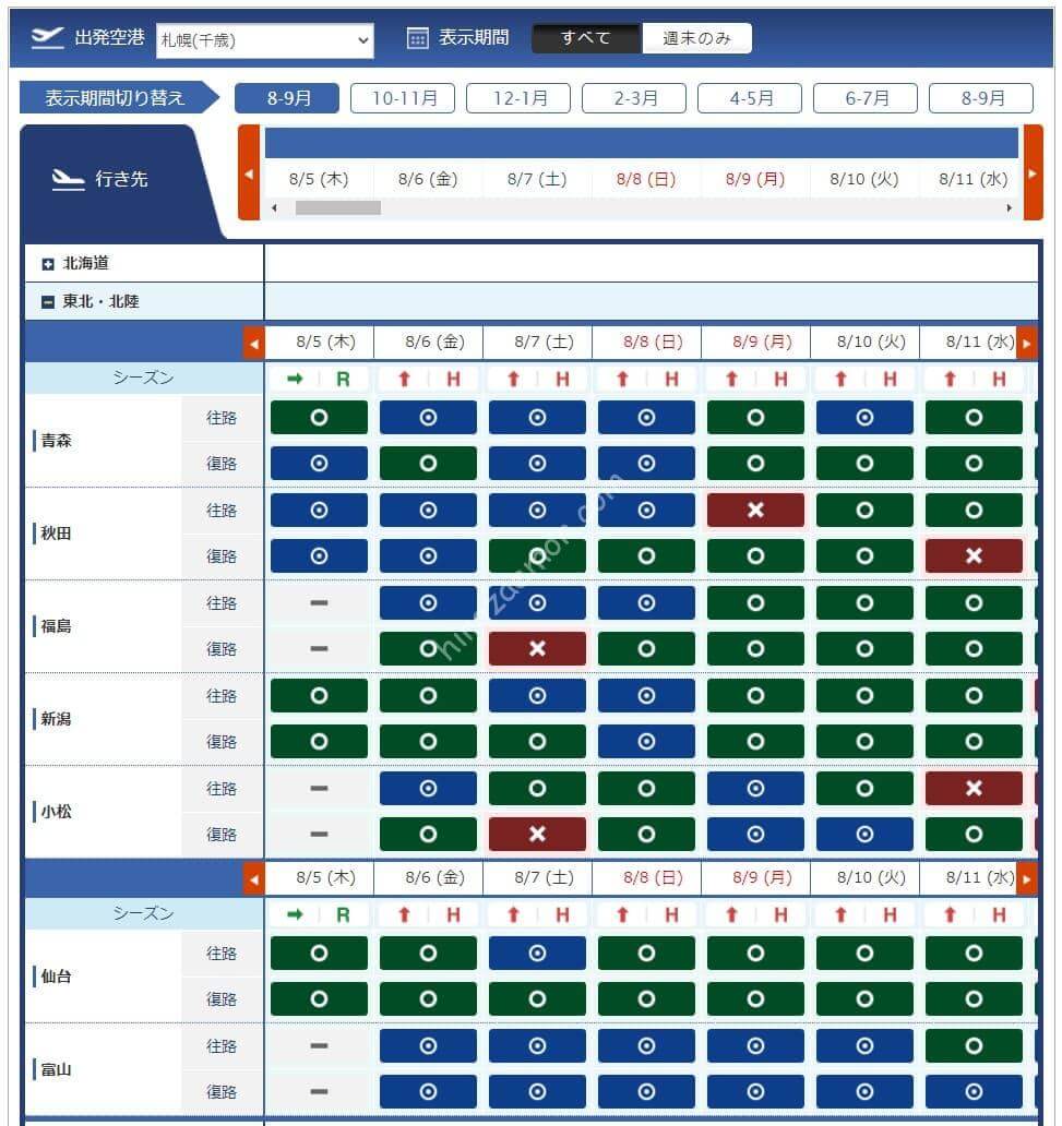 8月6日からはハイシーズンに入るため、4,500マイルから8,500マイルと先週までのトクたびマイルより必要マイルが増えています。