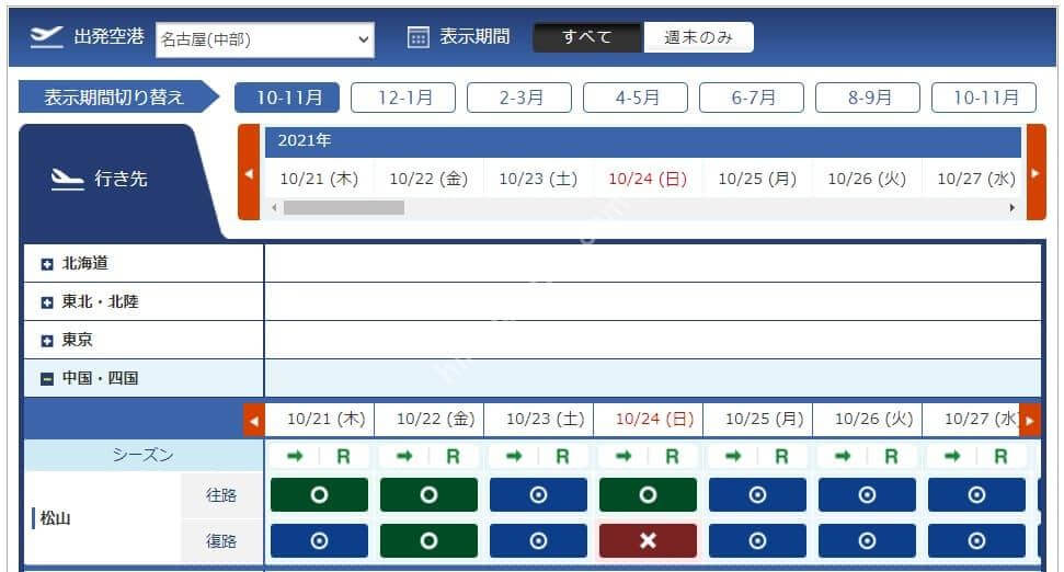 羽田 | 秋田 | 山口宇部 | 那覇 | 宮古 |