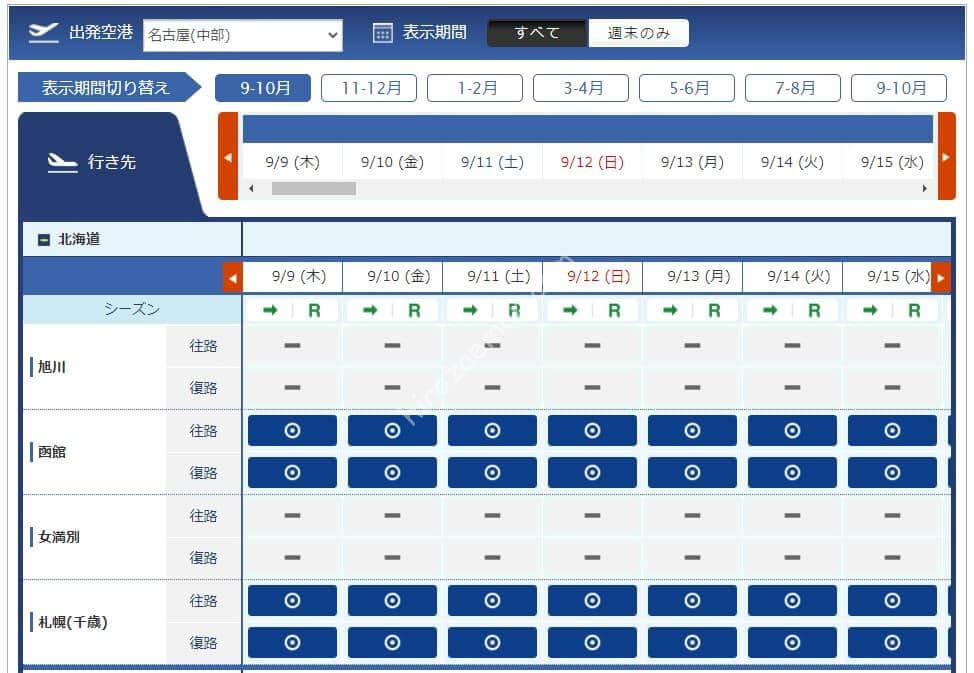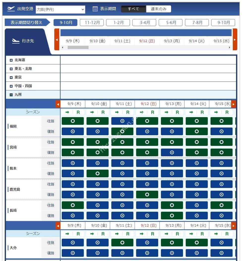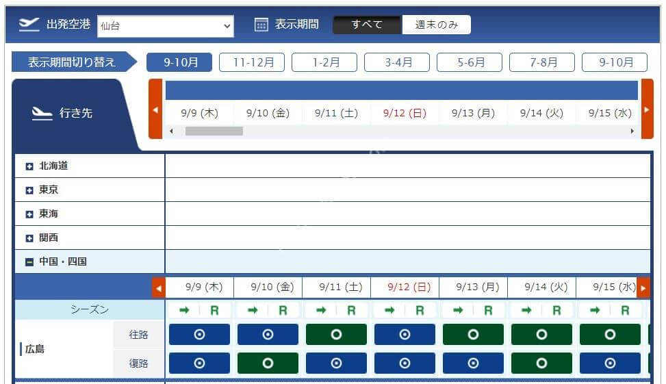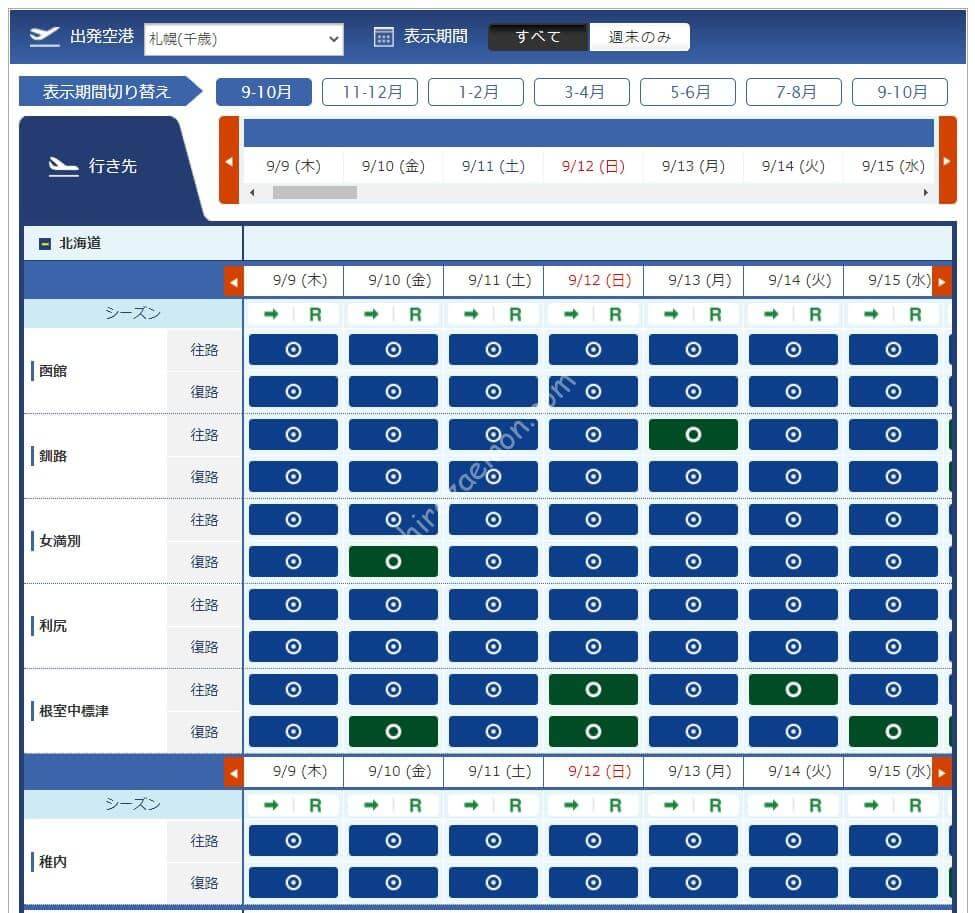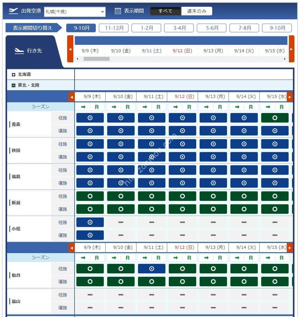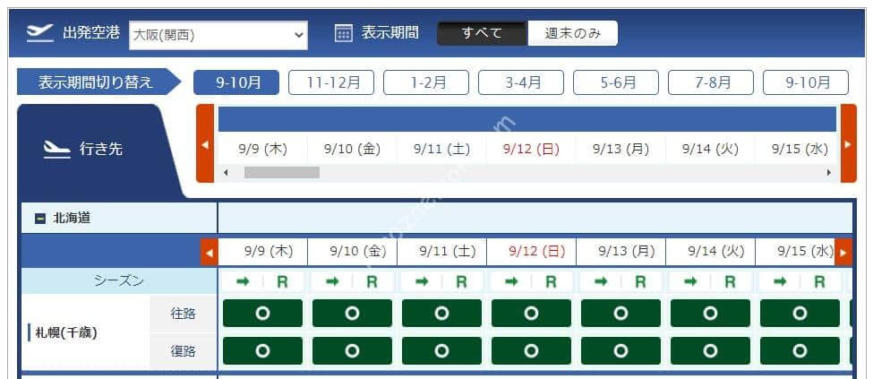 今週も沖縄方面の設定はありませんが関西から4,500マイルで行ける千歳もお得です。