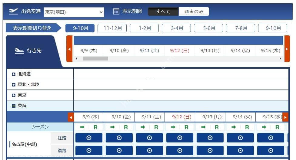 先週分からレギュラーシーズンのマイル設定になったためお得感が強くなっています。今週は3,000マイルと4,500マイルの設定で、羽田からは3,000マイルで能登と小松の石川県にある2空港が対象になっています。石川県は温泉場も多く加賀地方や金沢もしくは能登地方を観光するには嬉しい設定です。