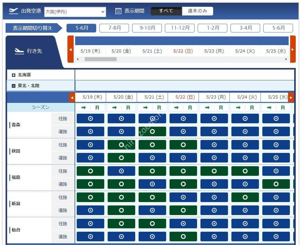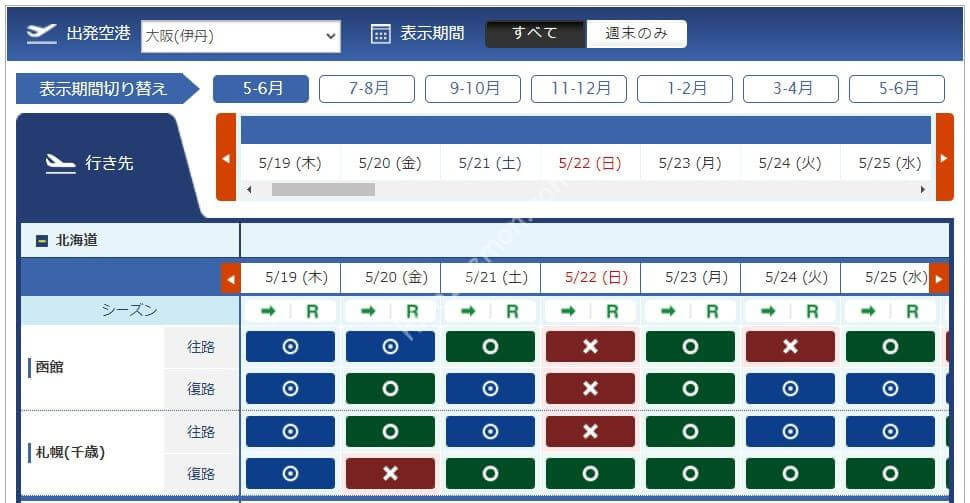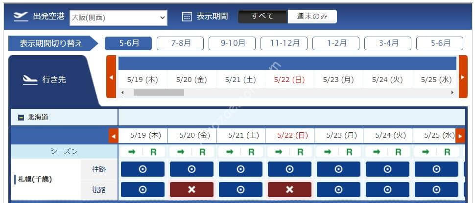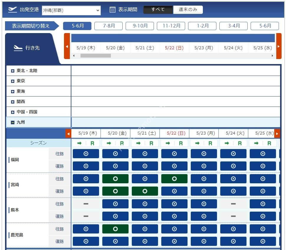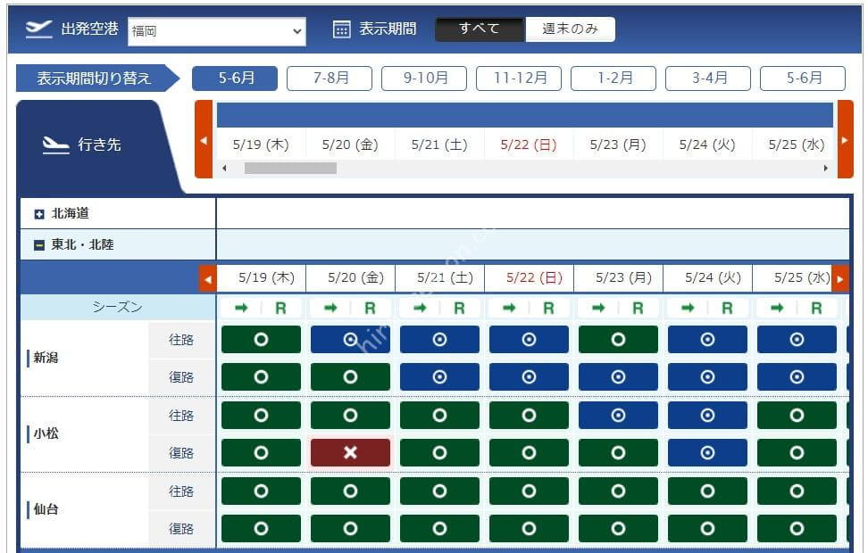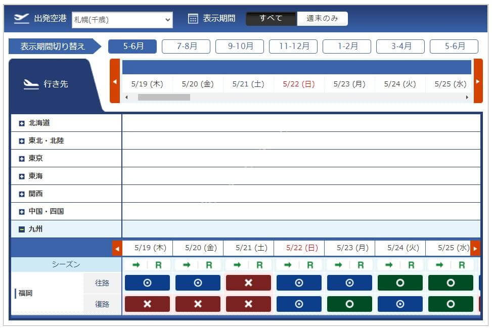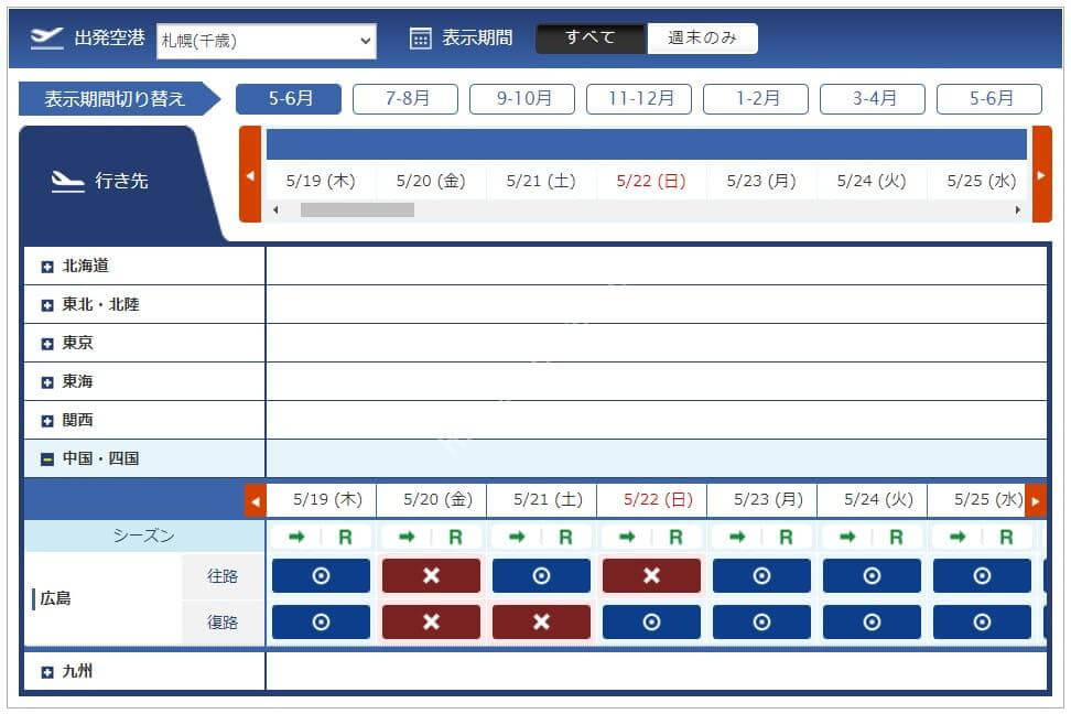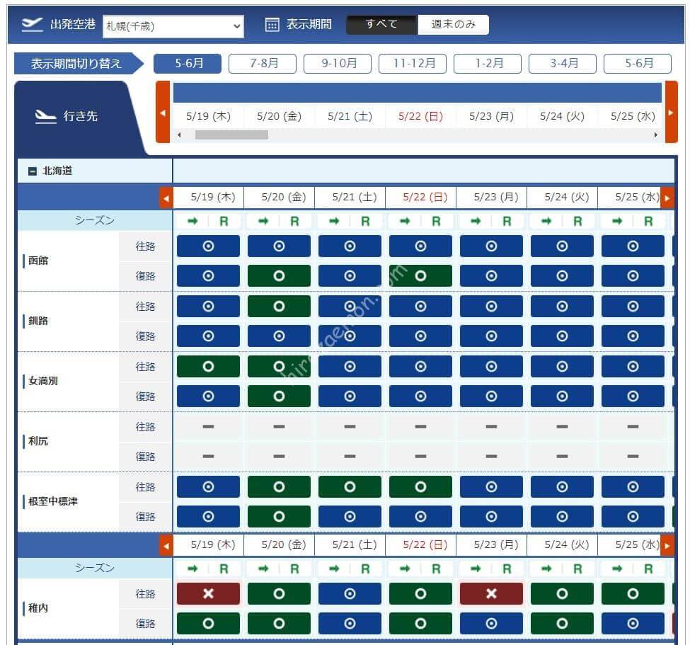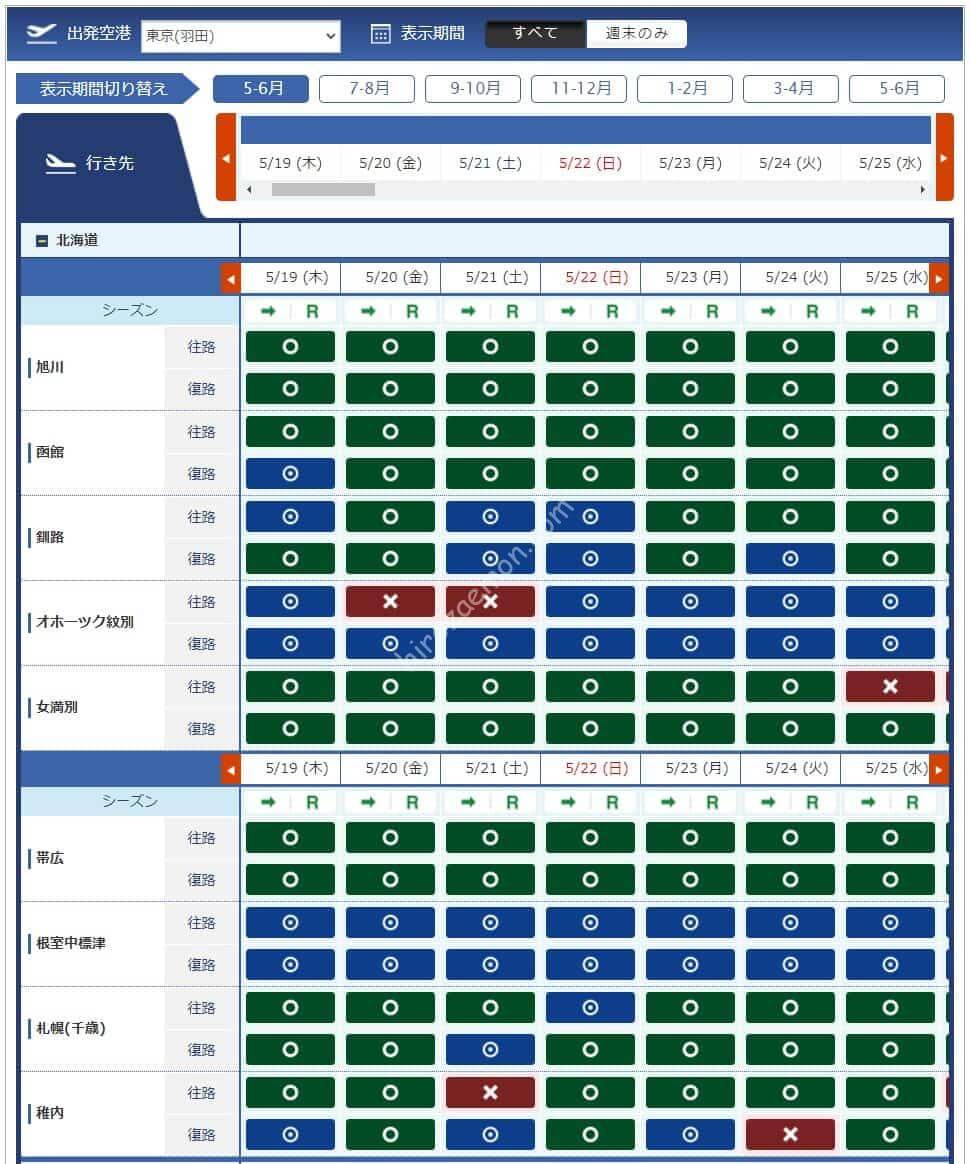 今週は那覇が少ない代わりに北海道方面が多く設定されています。