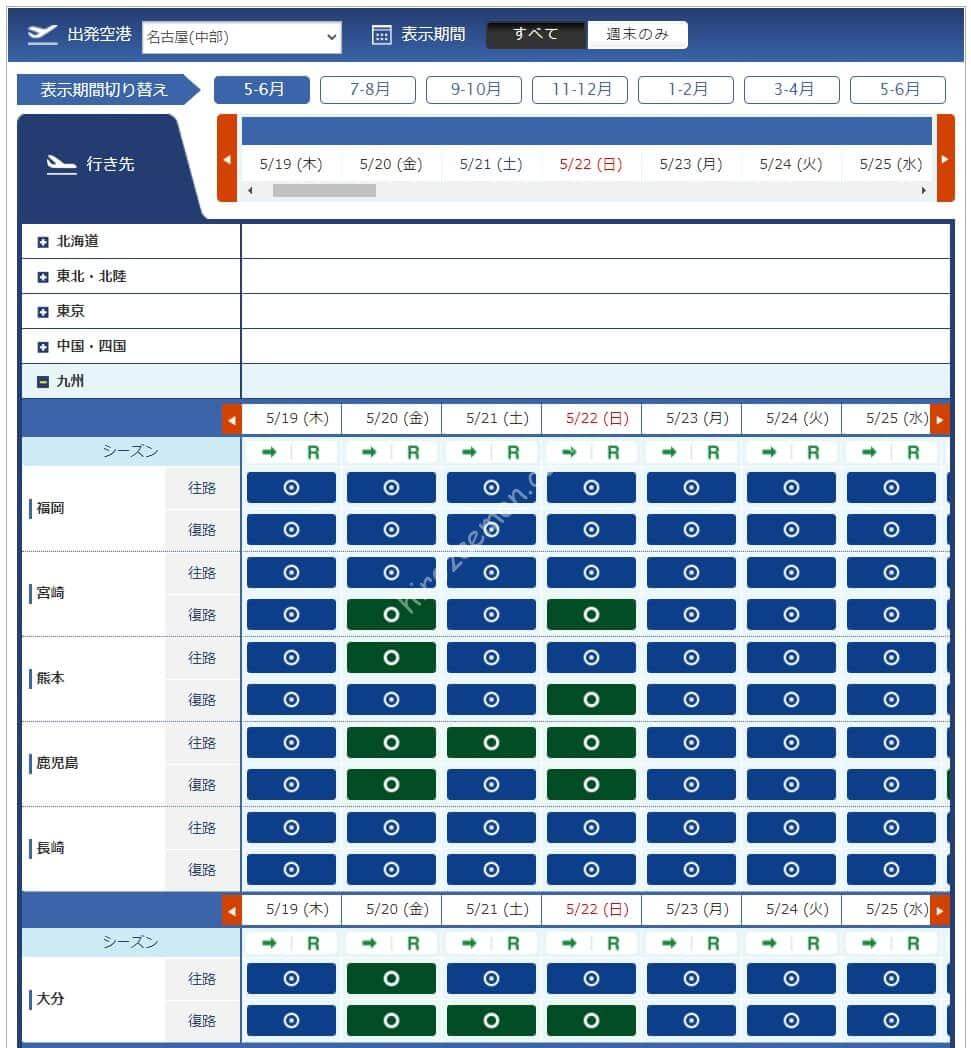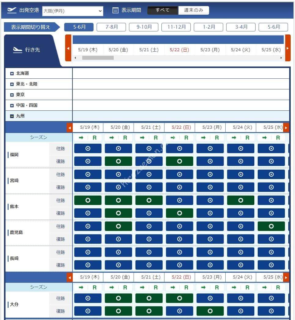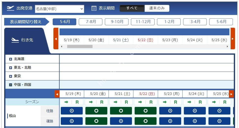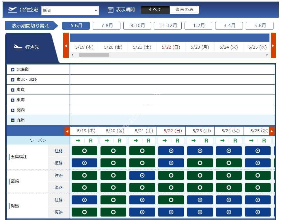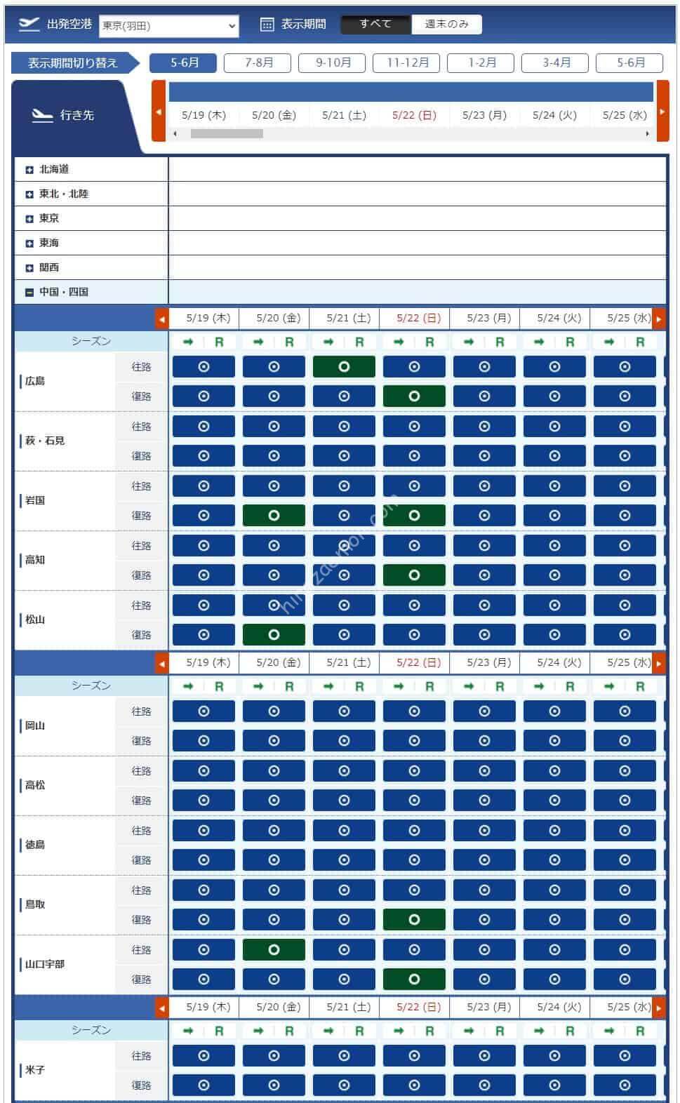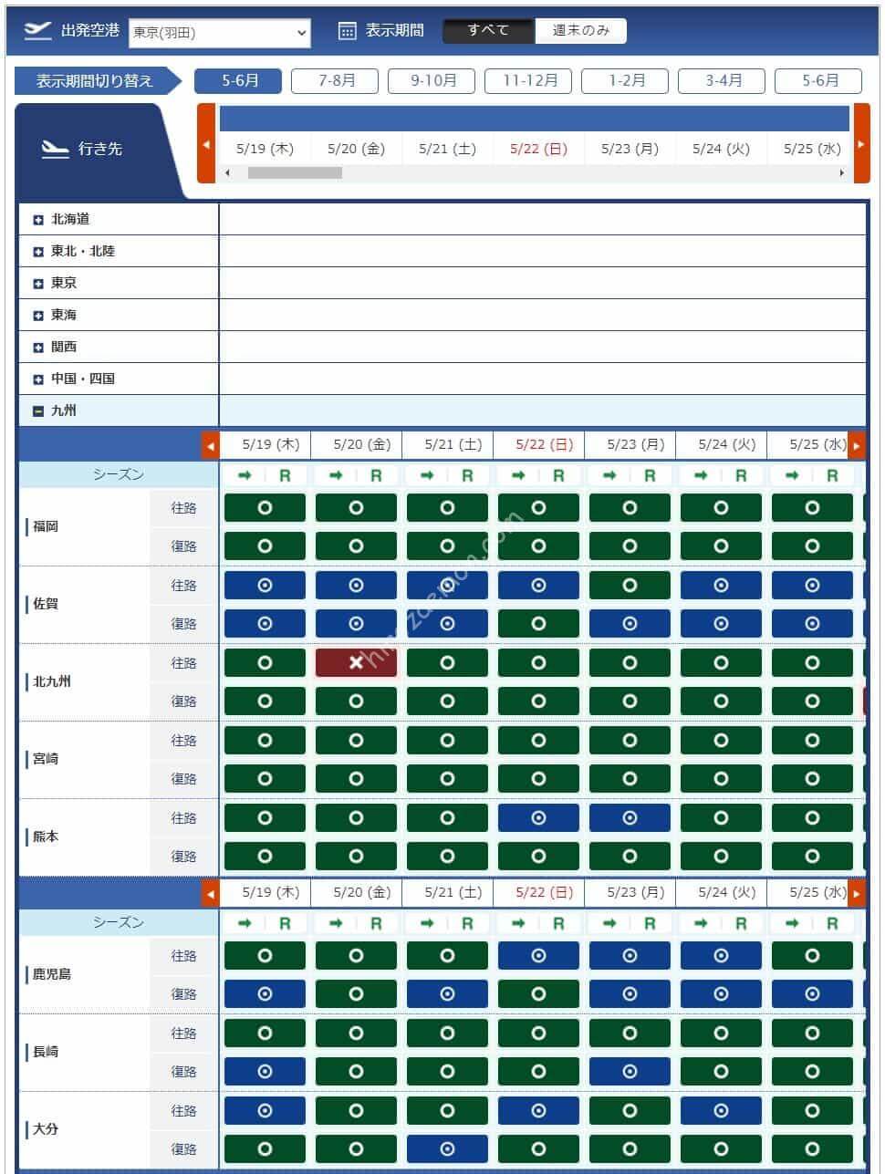 今週は那覇が少ない代わりに北海道方面が多く設定されています。