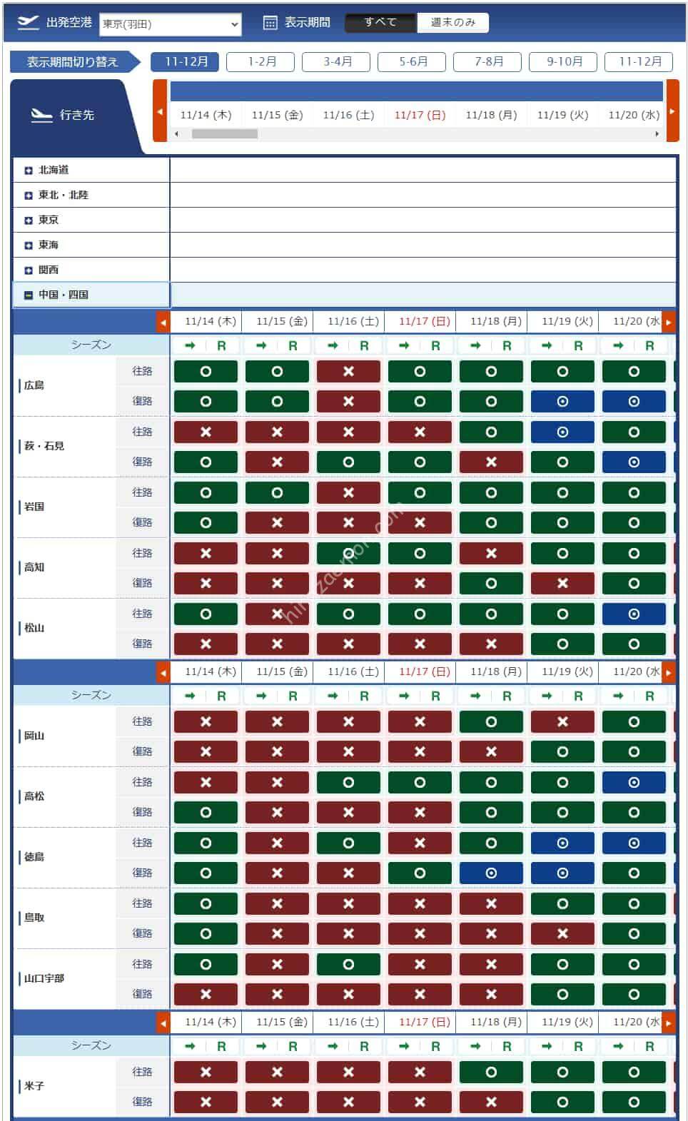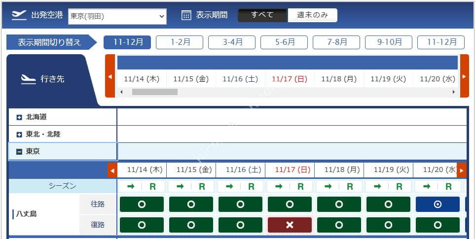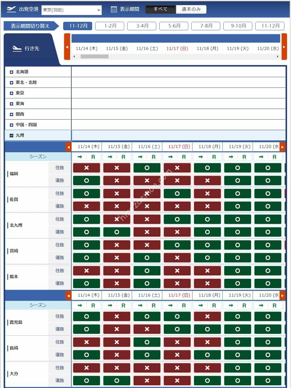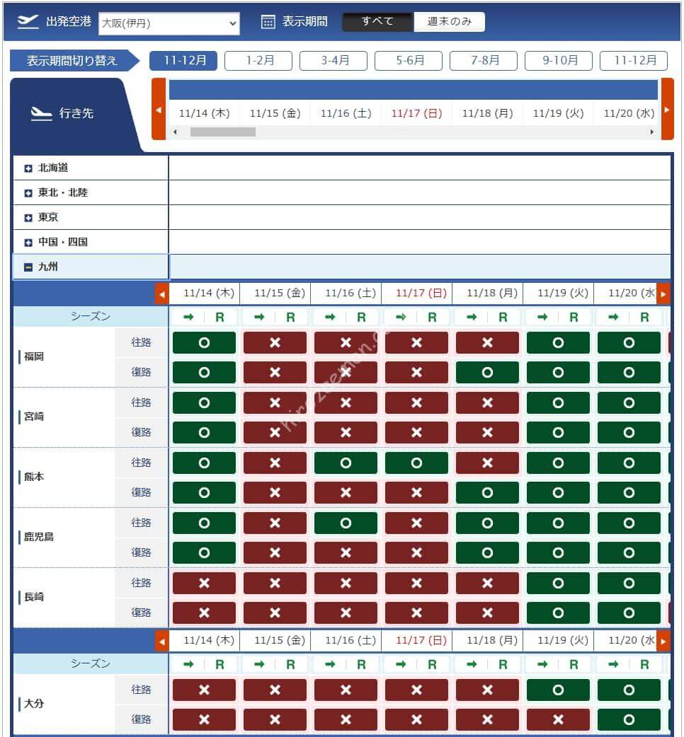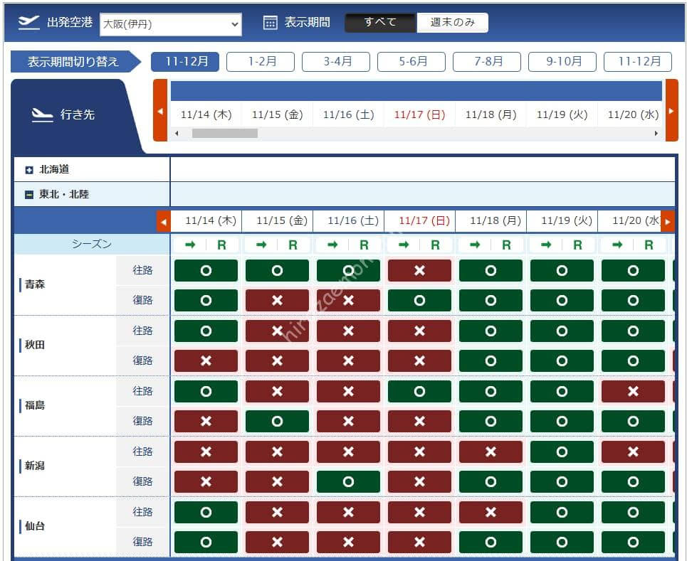 前回の11月12日発表分では3,500マイルで行ける羽田から小松や中部、神戸、5,500マイルで行ける伊丹から那覇や関西から千歳、6,500マイルで行ける羽田、静岡、中部から那覇などがありました。