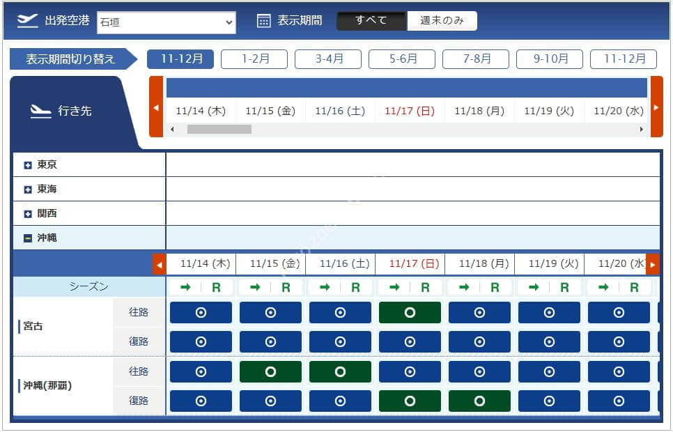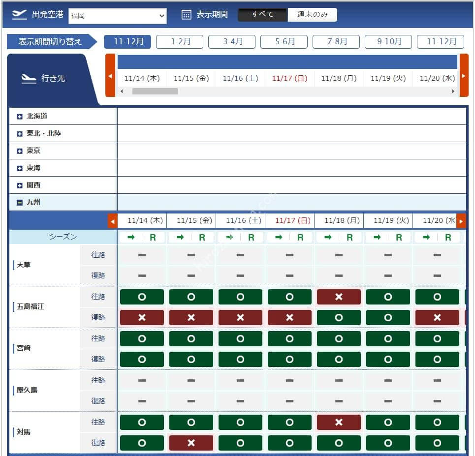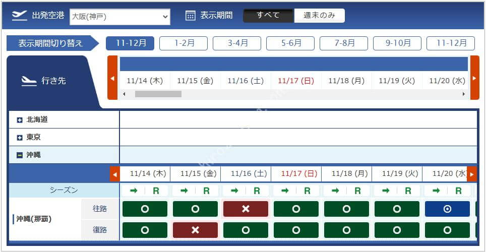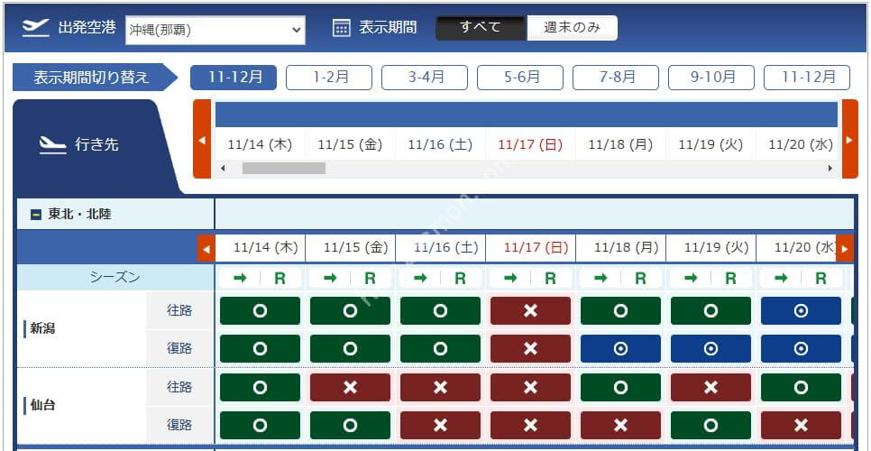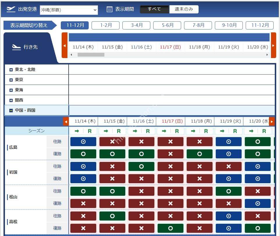 今週分で那覇が設定されている路線は新潟、神戸、高松、広島です。
