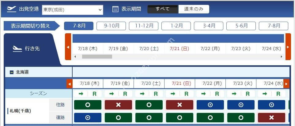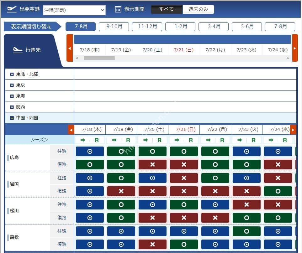 5月7日搭乗分からはレギュラーシーズンが適用されます。
