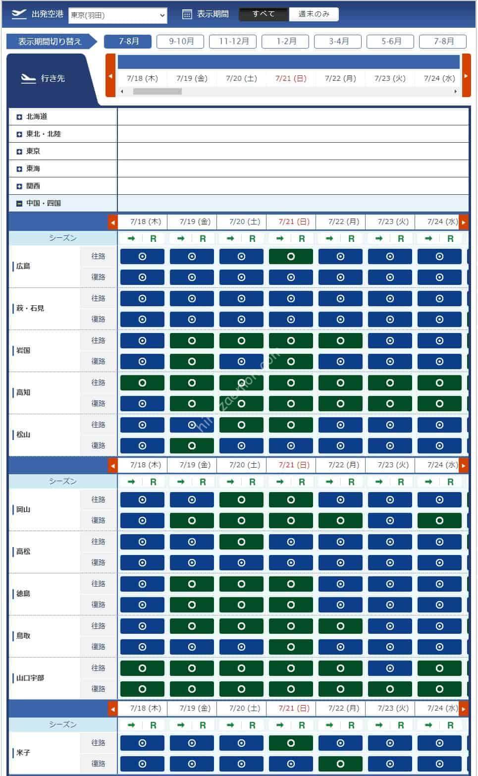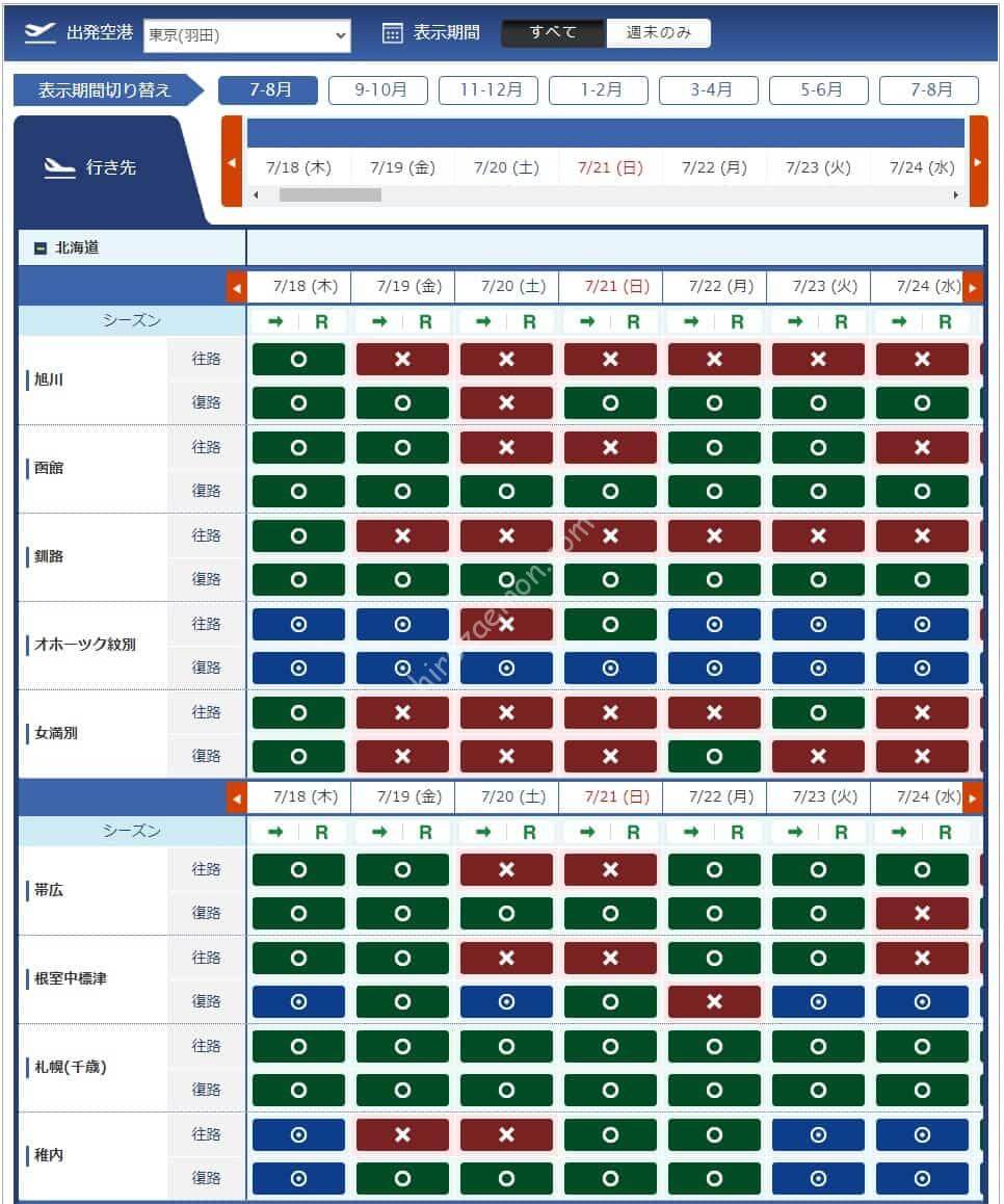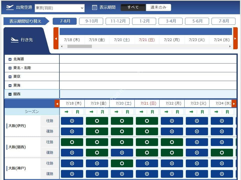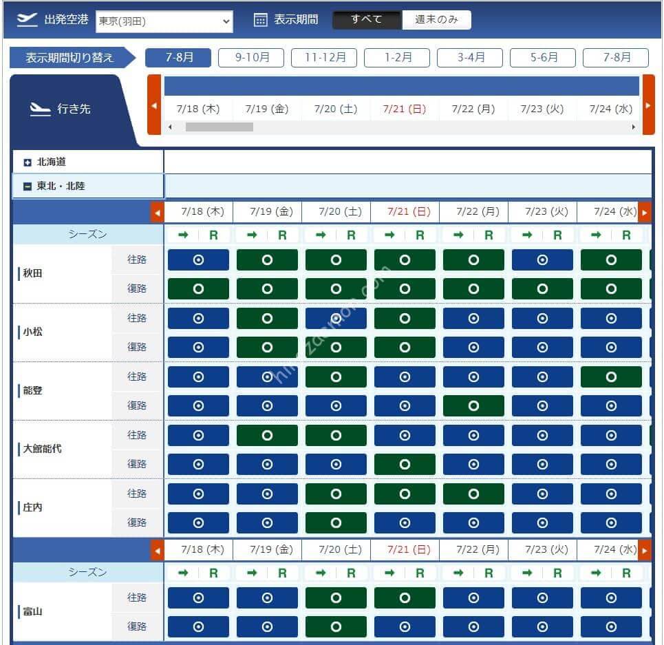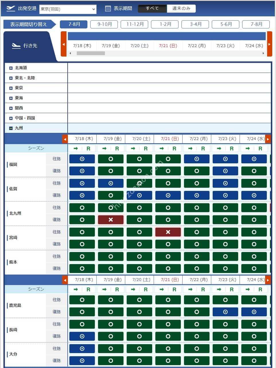 前回の7月9日発表分では3,000マイルで行ける羽田から八丈島や伊丹、4,500マイルで行ける羽田から中国、四国、九州方面や中部と伊丹から仙台などがありました。