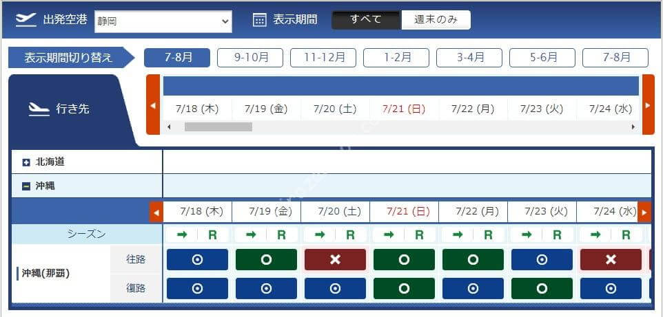 今週分で那覇が設定されている路線は静岡、高松、福岡、鹿児島、宮古です。