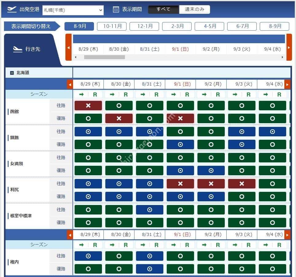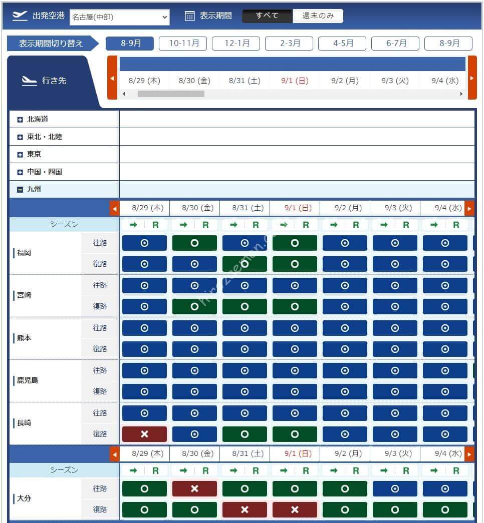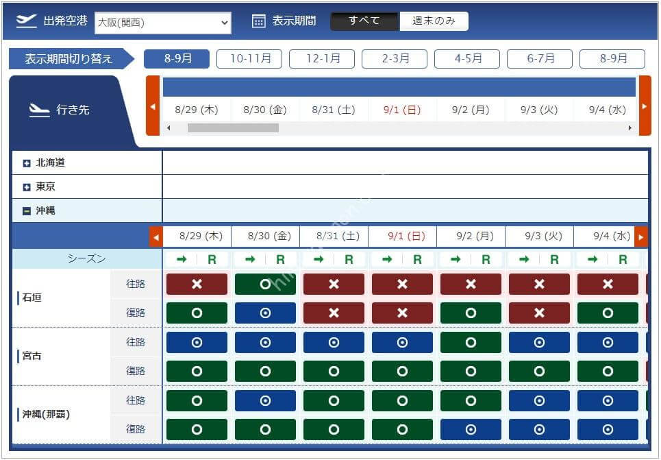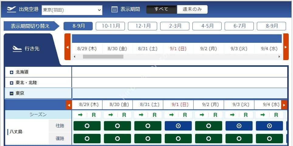 8月19日搭乗分からはレギュラーシーズンが適用されます。