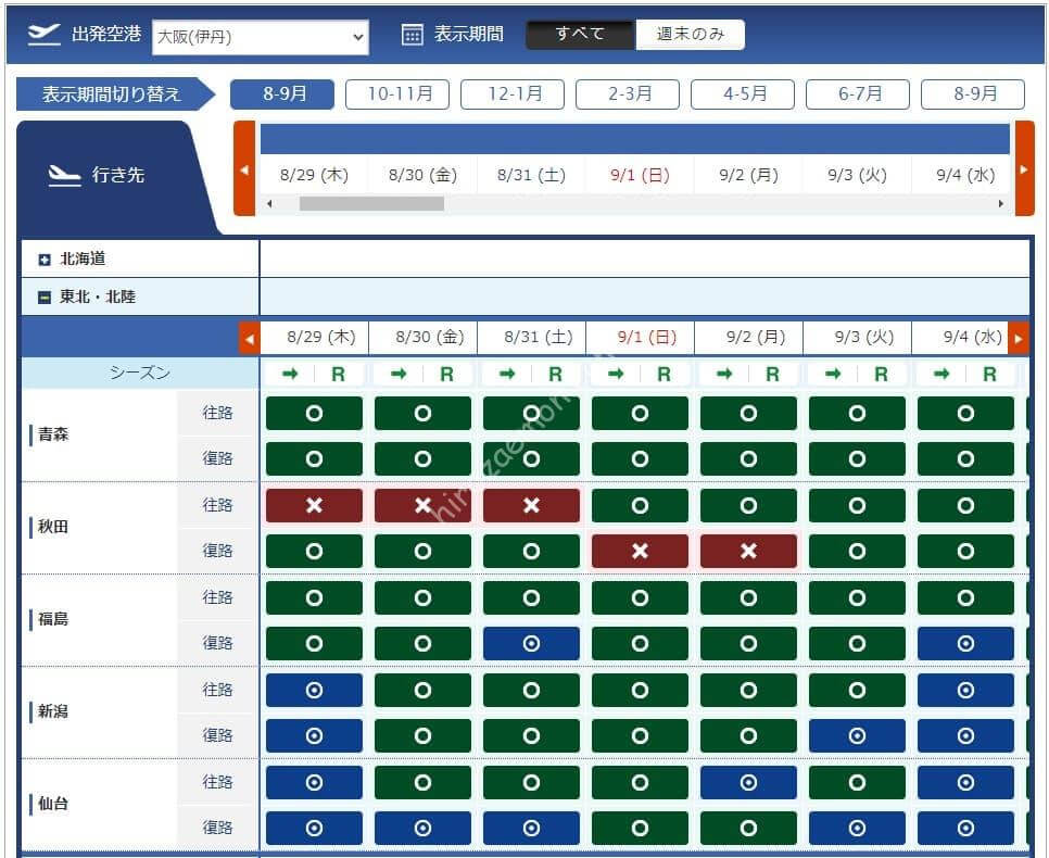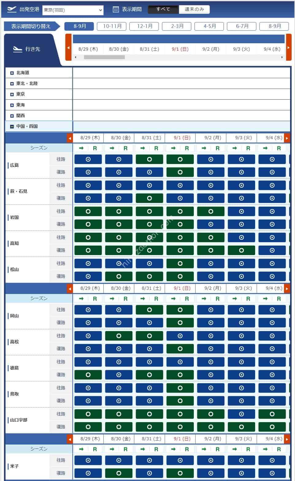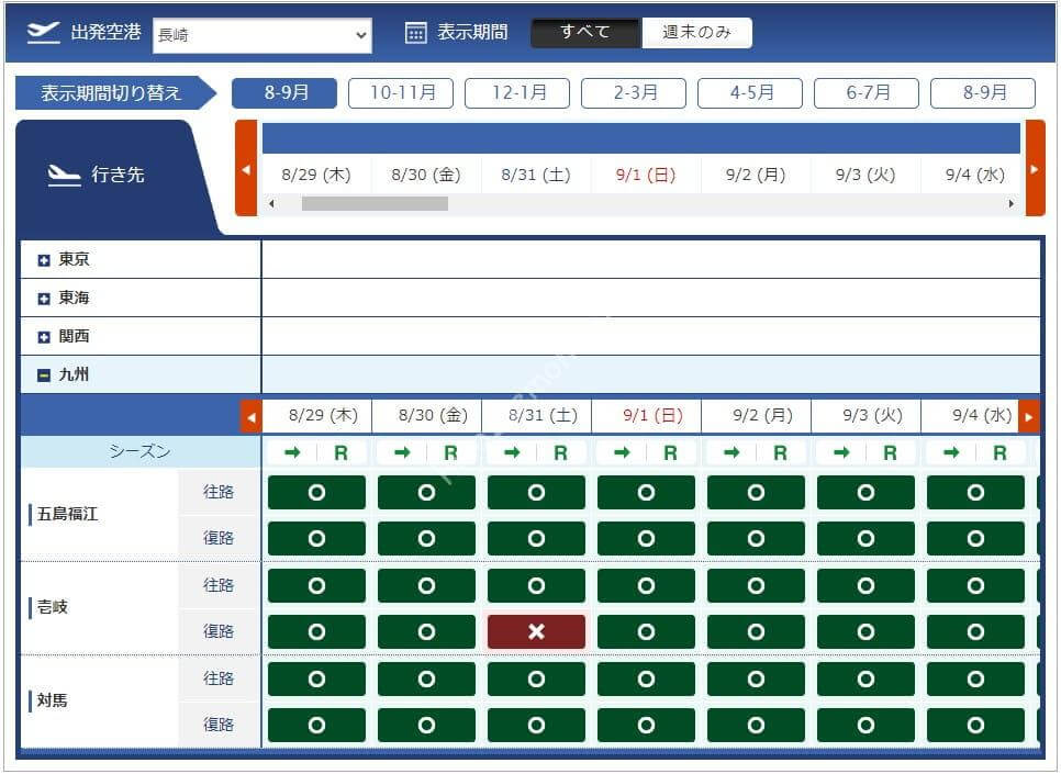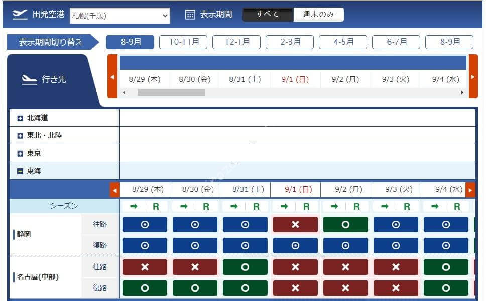 8月19日搭乗分からはレギュラーシーズンが適用されます。