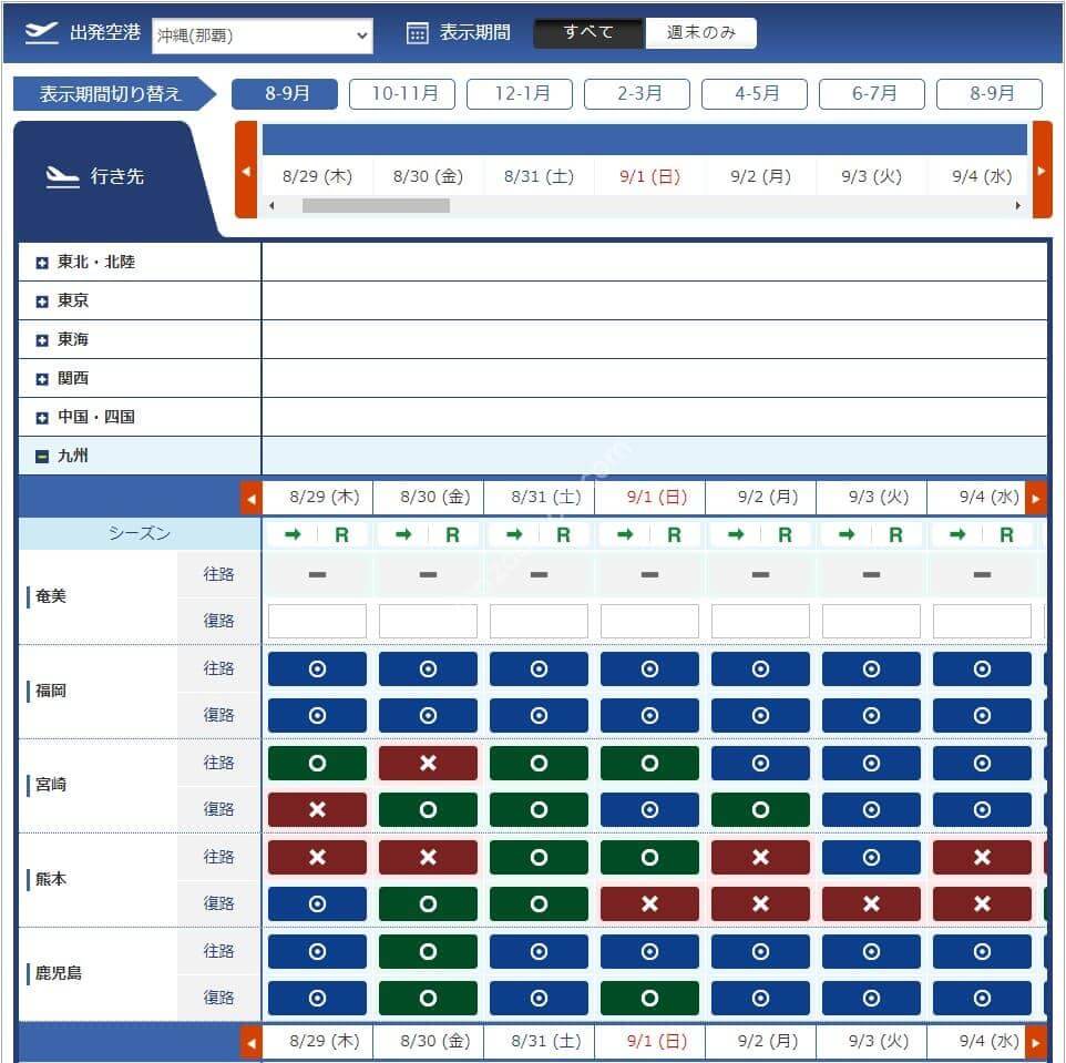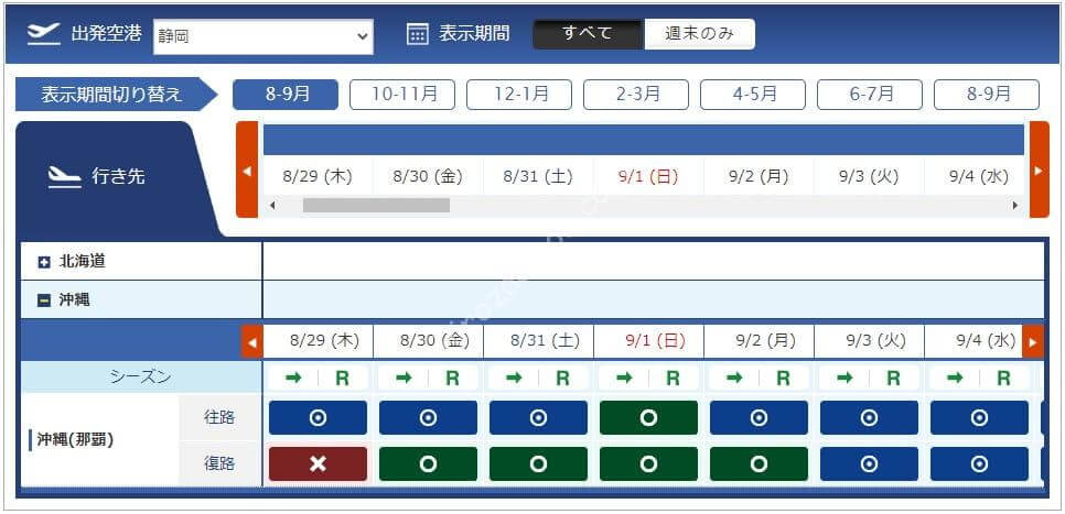 今週分で那覇が設定されている路線は静岡、高松、関西、宮崎、宮古です。