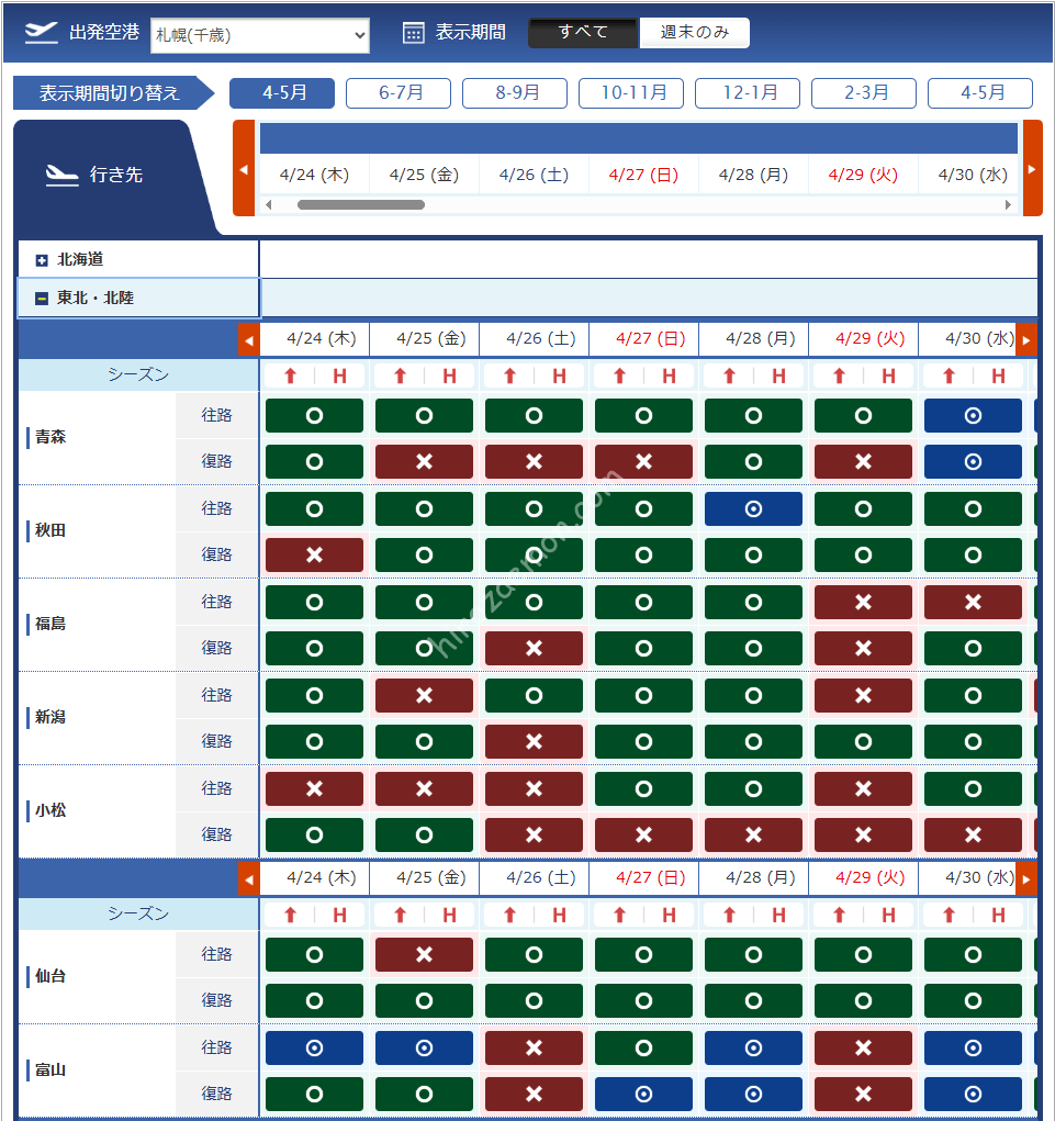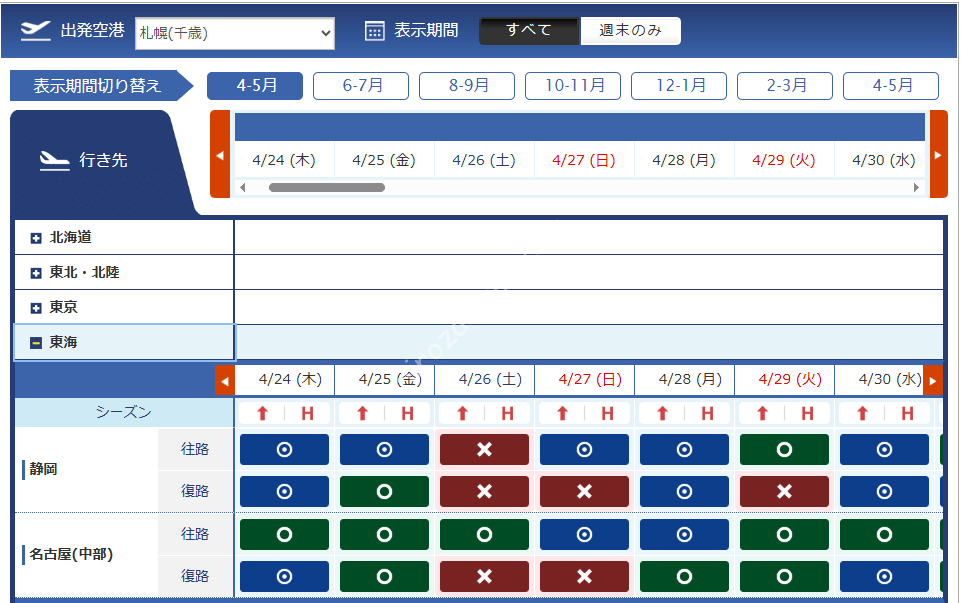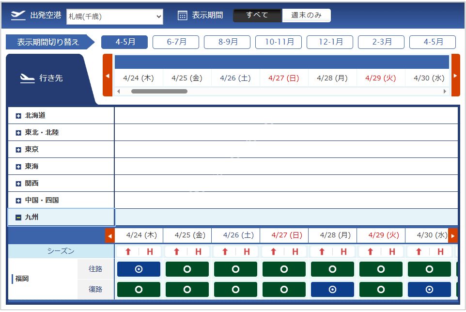 千歳 | 女満別 | 小松 | 福岡 |