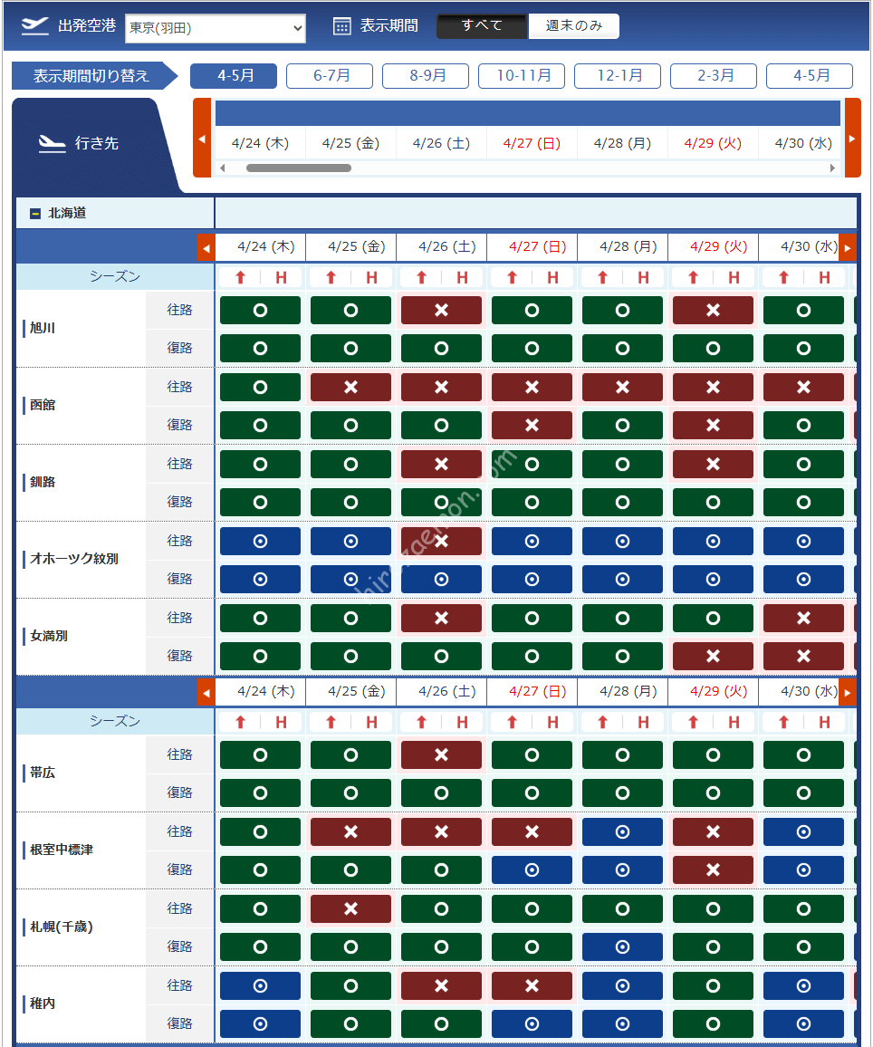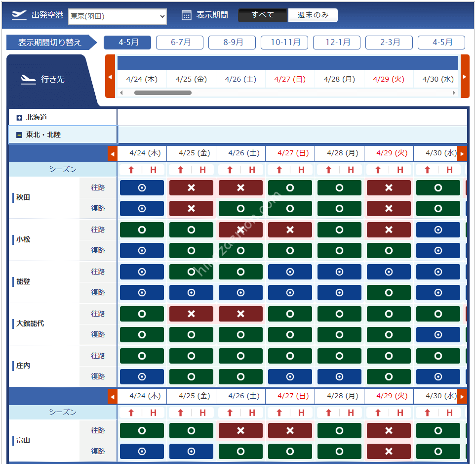 羽田 | 秋田 | 稚内 | ||