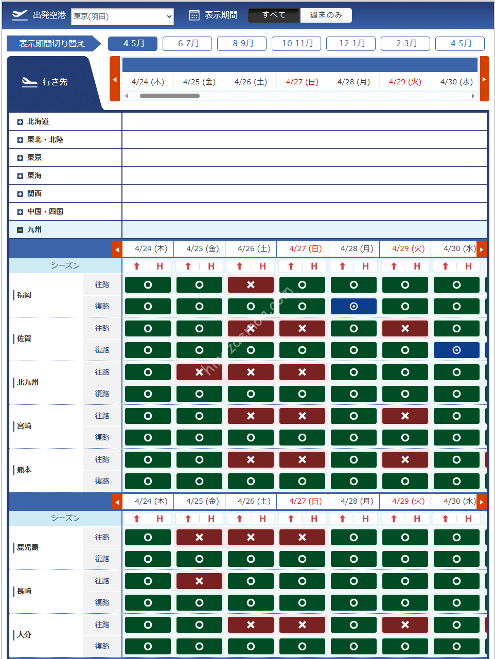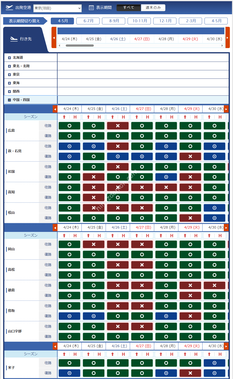 羽田 | 庄内 | 女満別 | 那覇 |