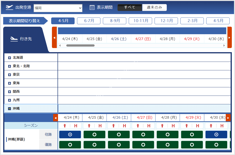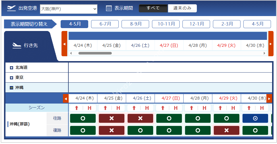 4月24日搭乗分からはハイシーズンのマイル数が適用されます。