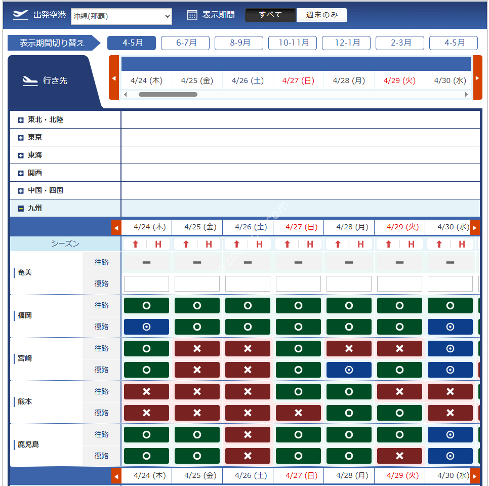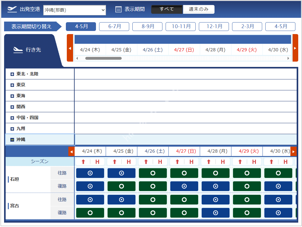 関西 | 那覇 | 宮古 | ||