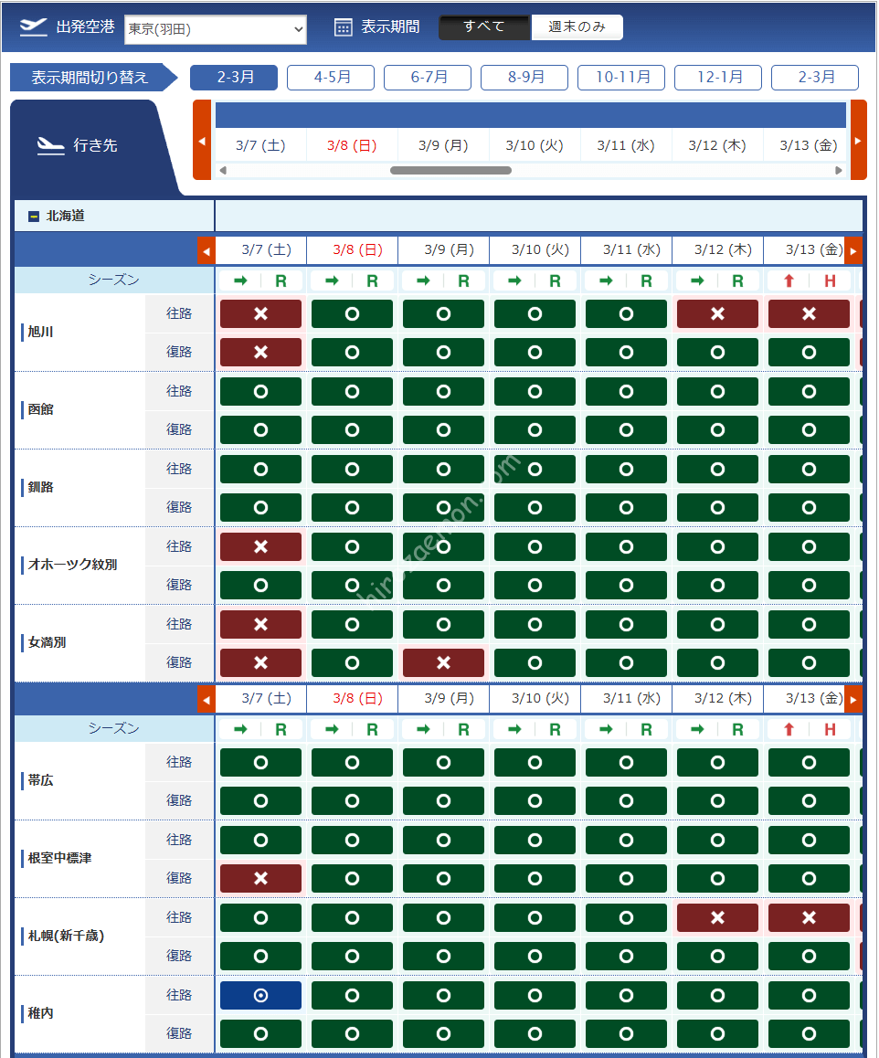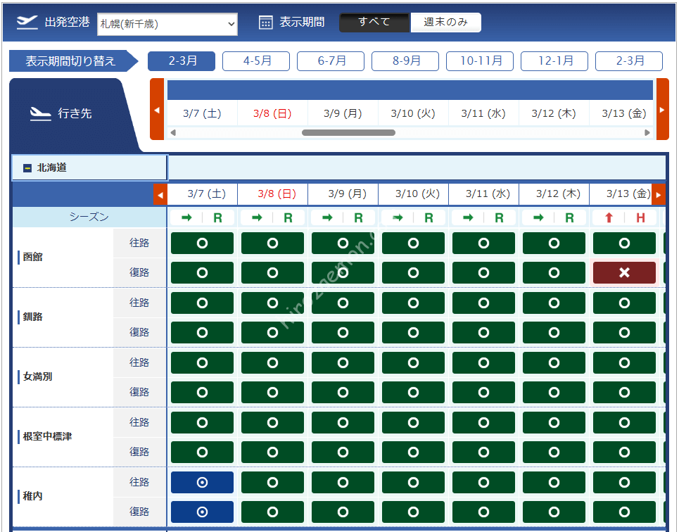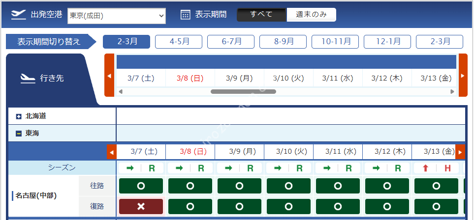 3月13日搭乗分からはハイシーズンのマイル数が適用されます。