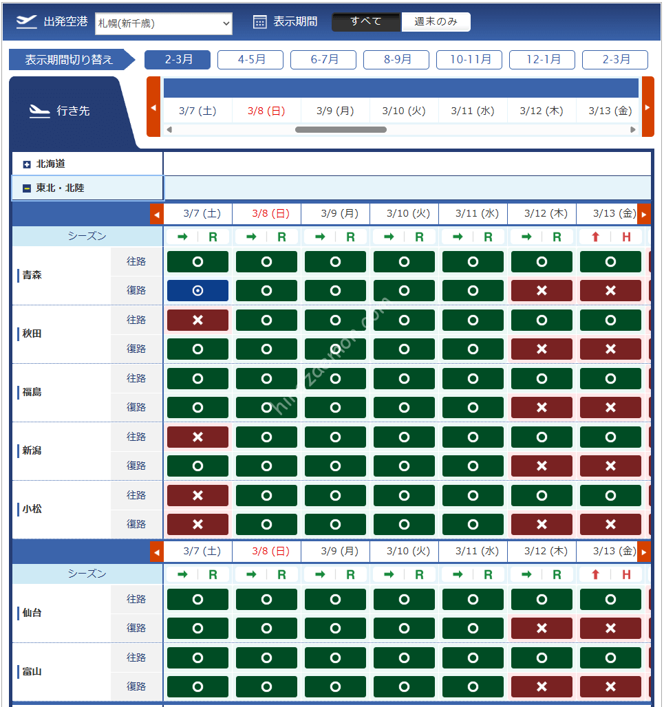| 千歳 | 女満別 | 富山 | 福岡 | ||