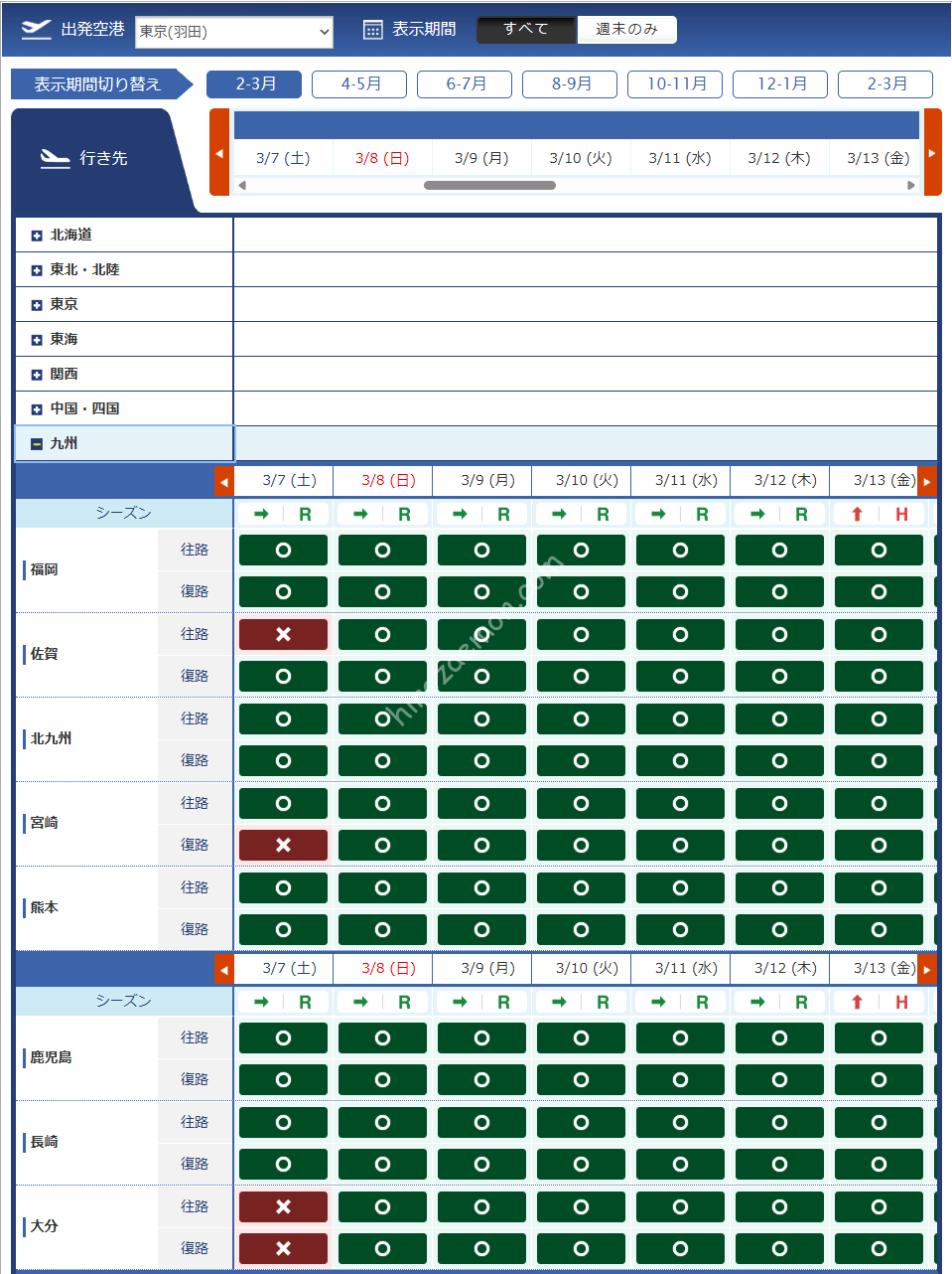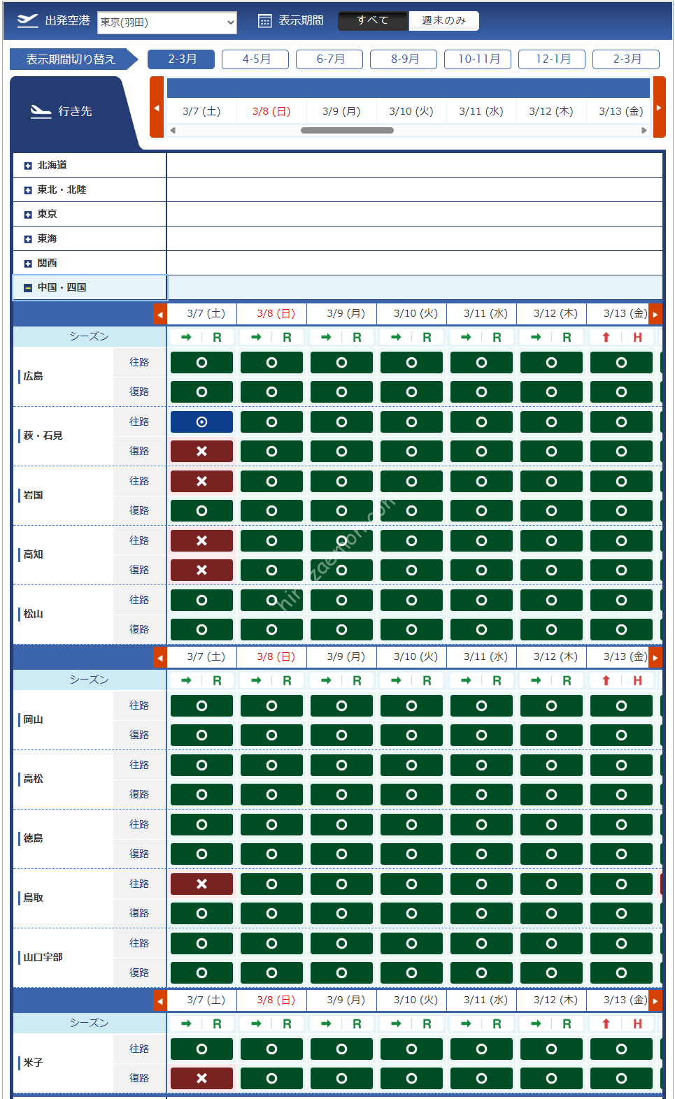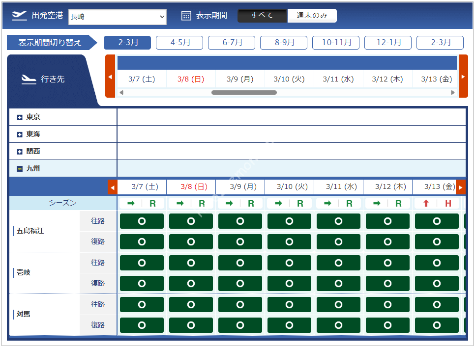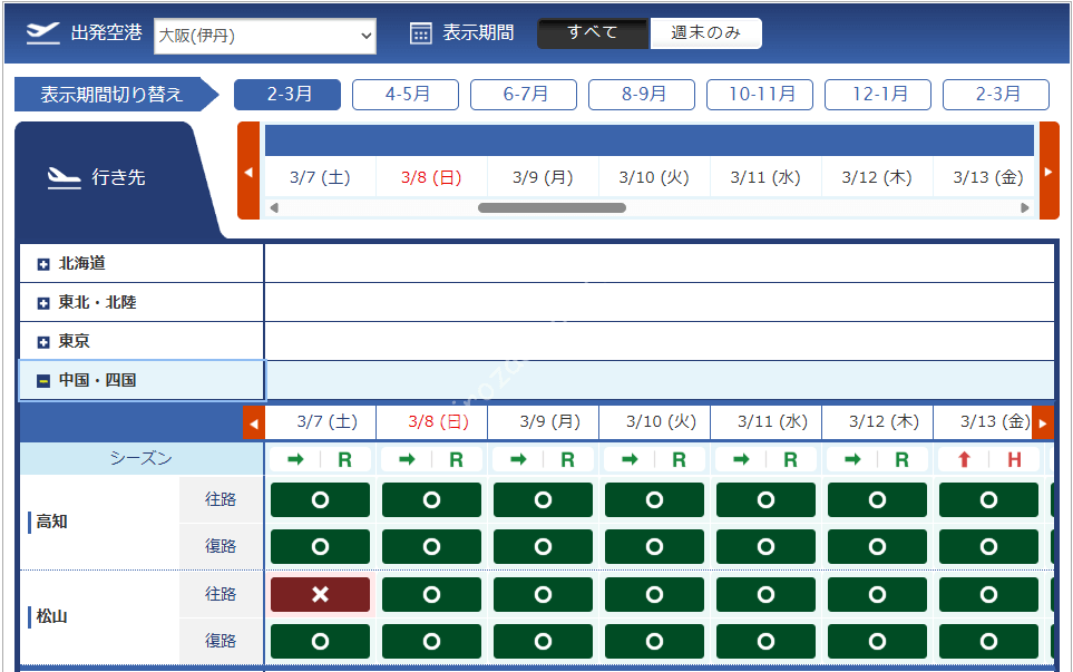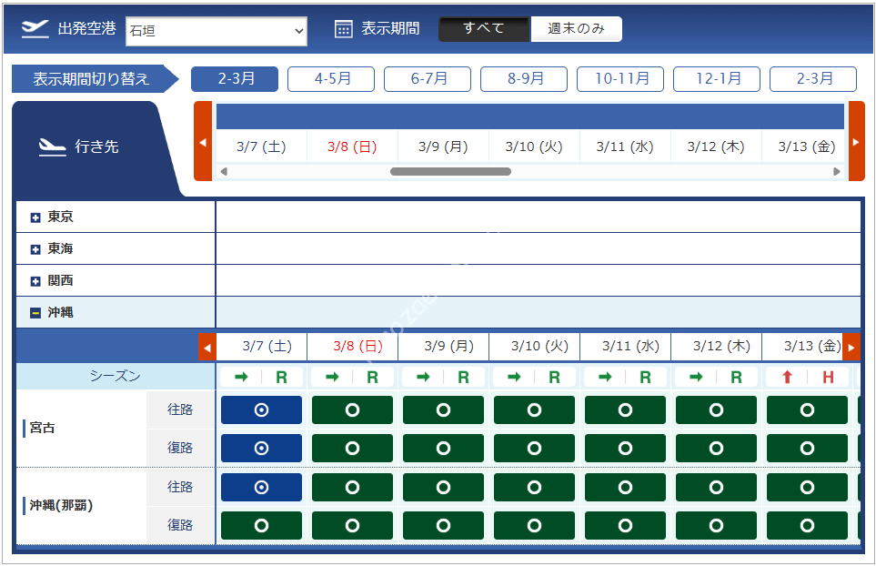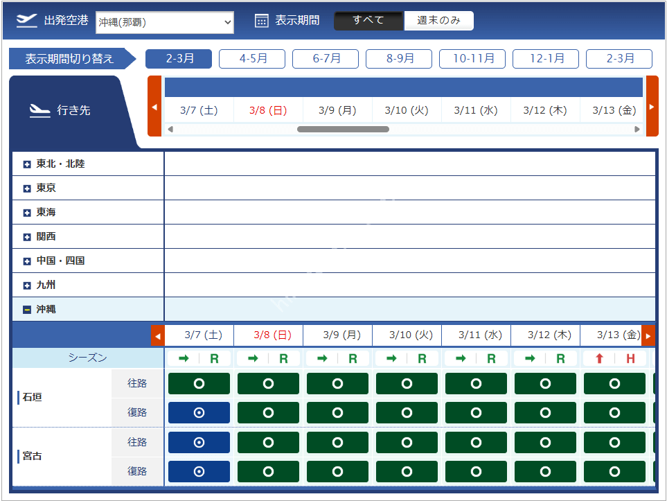 | 関西 | 那覇 | 石垣 | |||