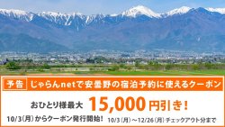 1月12日10時からじゃらんnetの「クーポンフェス」で最大30%以上お得になる20,000円分のクーポンが配布されます。1月10日以降の継続が決まった「全国旅行支援」では「クーポンフェス」のクーポンと併用可能な自治体もあります。1名以上の予約で使えるクーポンのため一人旅にもおすすめです。