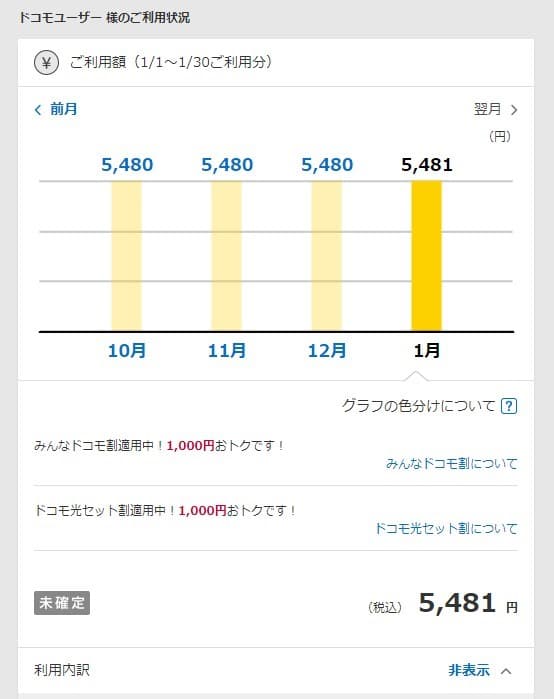 ドコモ光セット割 | -1,000円 | -1,000円 | -1,000円 | -1,000円 |