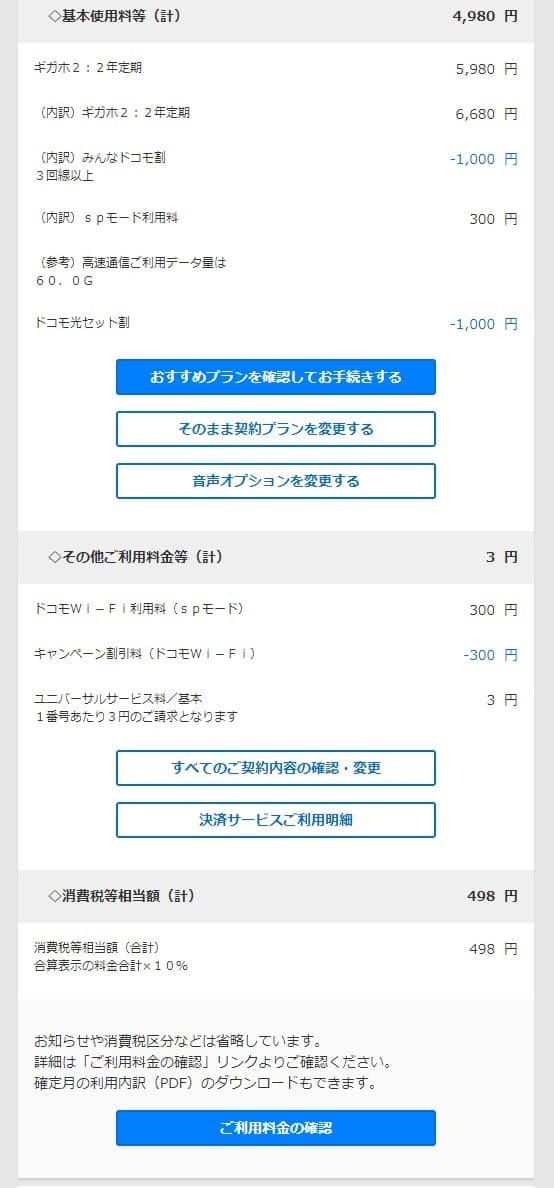 4Gのギガホよりも「5Gギガホ」の方が毎月安くなり、通信量の上限も無くなるため、ドコモの端末購入無しで変更してみました。