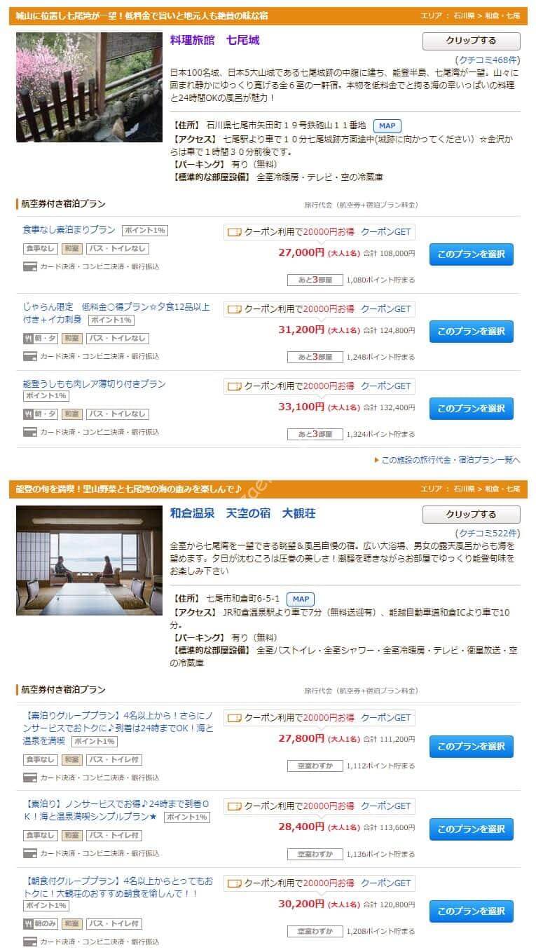 じゃらんnetでは石川県で使える「ANAじゃらんパック限定クーポン」を配布中です。