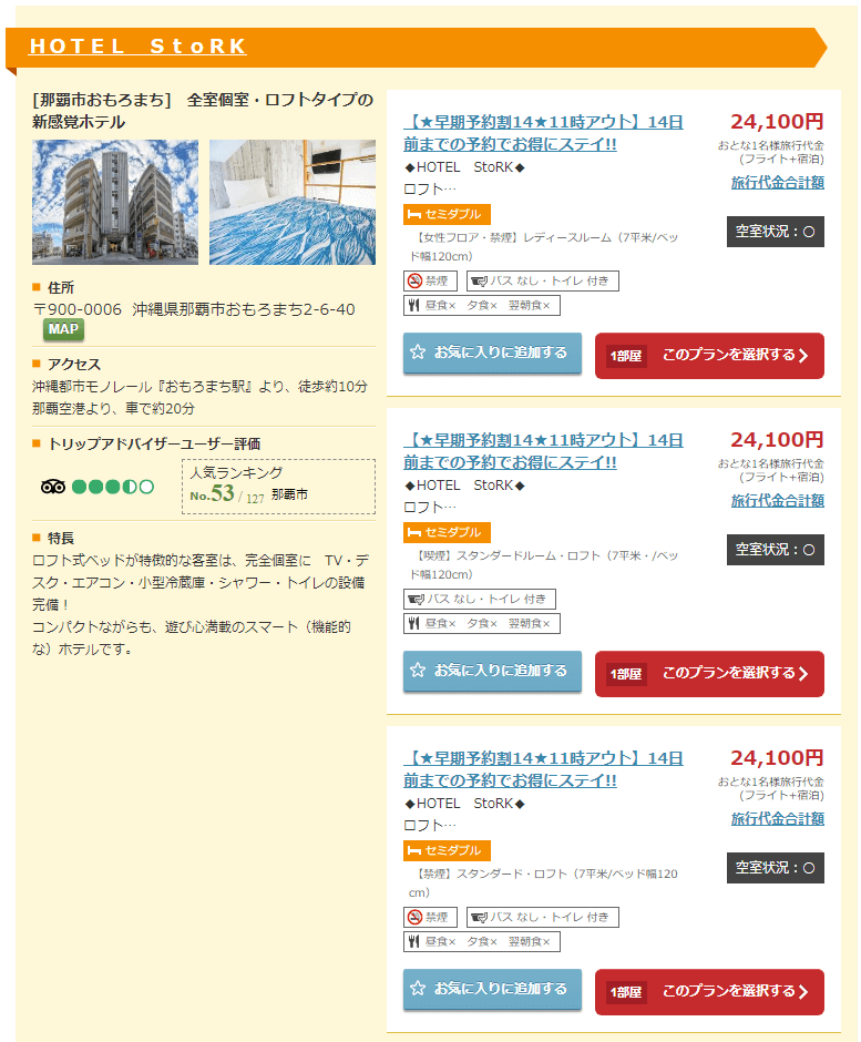 2社の”Go To トラベル”に対応する前の価格比較をしてみたいと思います。