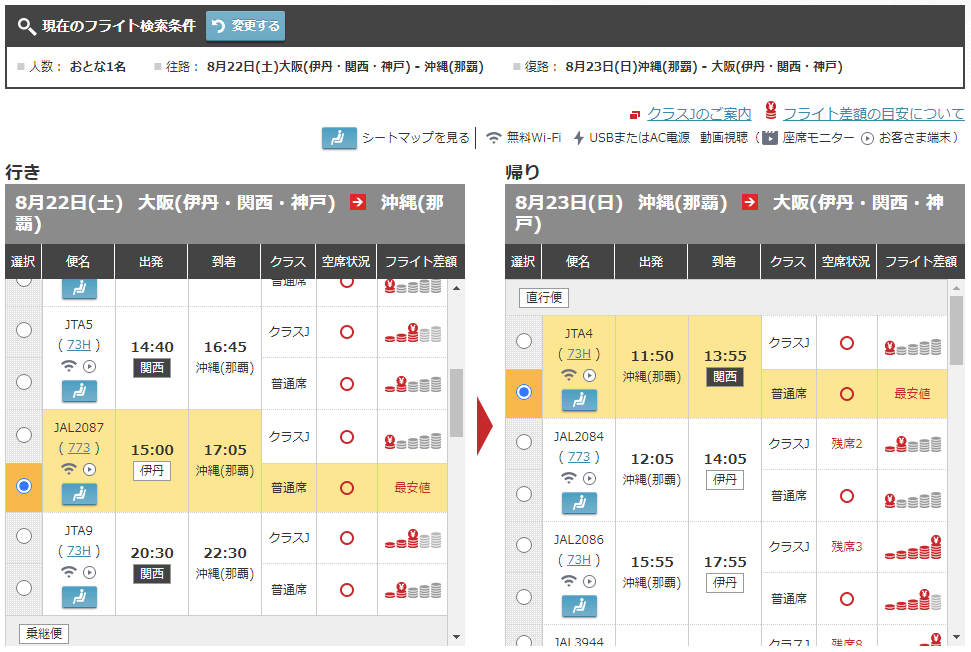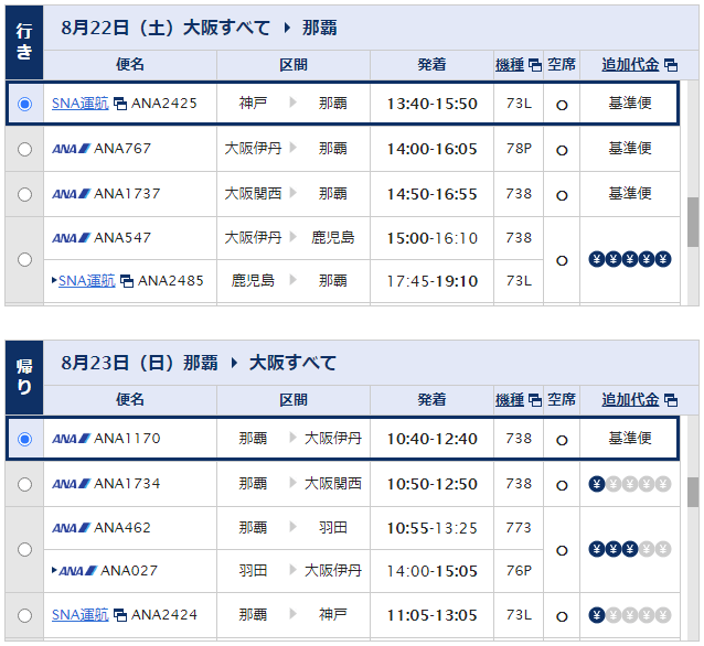 以前は出張などがあると両者を見比べ安い方を選んだりしていたのですが、最近はANAばかり利用していたのでこんなに差があったかな?という感じです。
