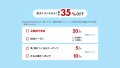 開始後1時間限定で7,000円OFFになるクーポンは割引率が20%OFFとかなりお得な割引率の設定です。開始後4時間限定の3,500円OFFのクーポンも狙い目です。また海外旅行を考えられている方には海外ツアーに使用できる最大50,000円OFFのクーポンも配布されます。