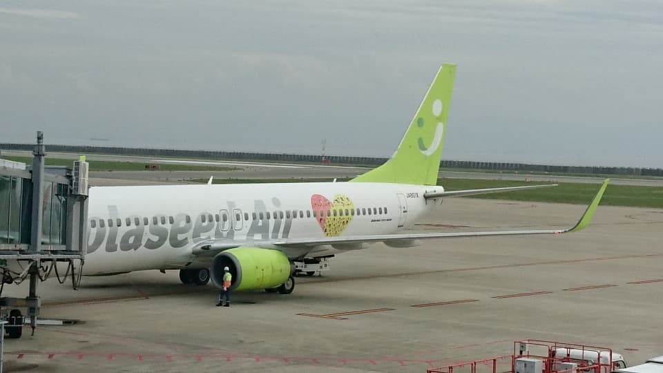 神戸から乗った機体が日南市をPRするための「ウィー♡(ラブ)ニチナン号」でした。