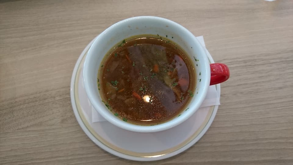 食べたメニューは「あぐー豚のカツカレー」と「ミネストローネ」です。